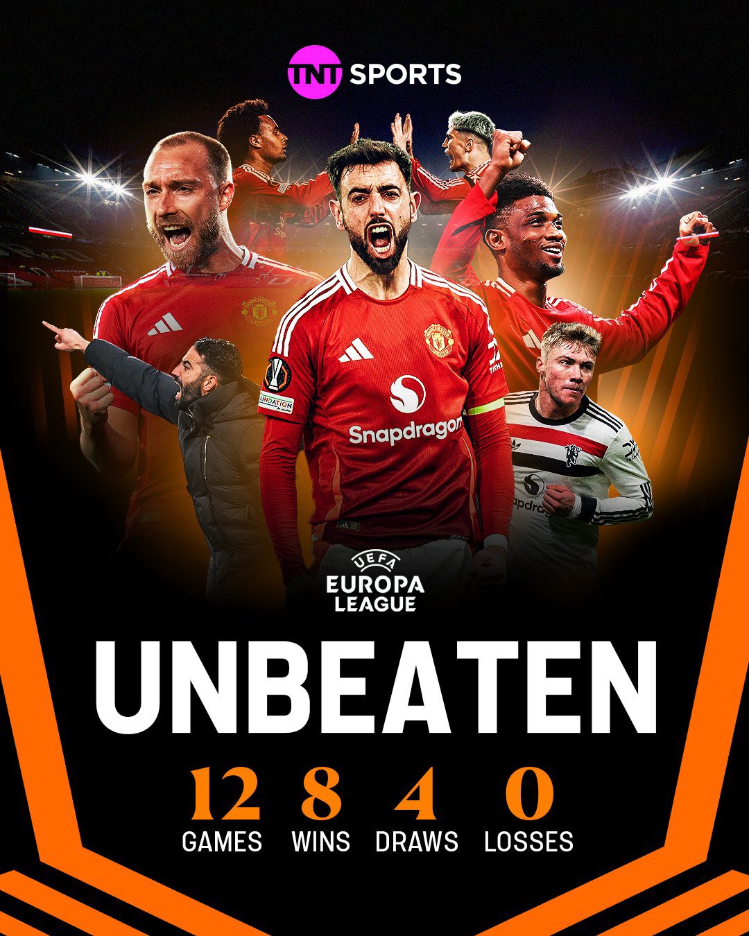 مانشستر يونايتد الفريق الوحيد الذي لم يخسر أي مباراة في المسابقات الأوروبية هذا الموسم.. 12 مباراة. 8 انتصارات. 4 تعادل