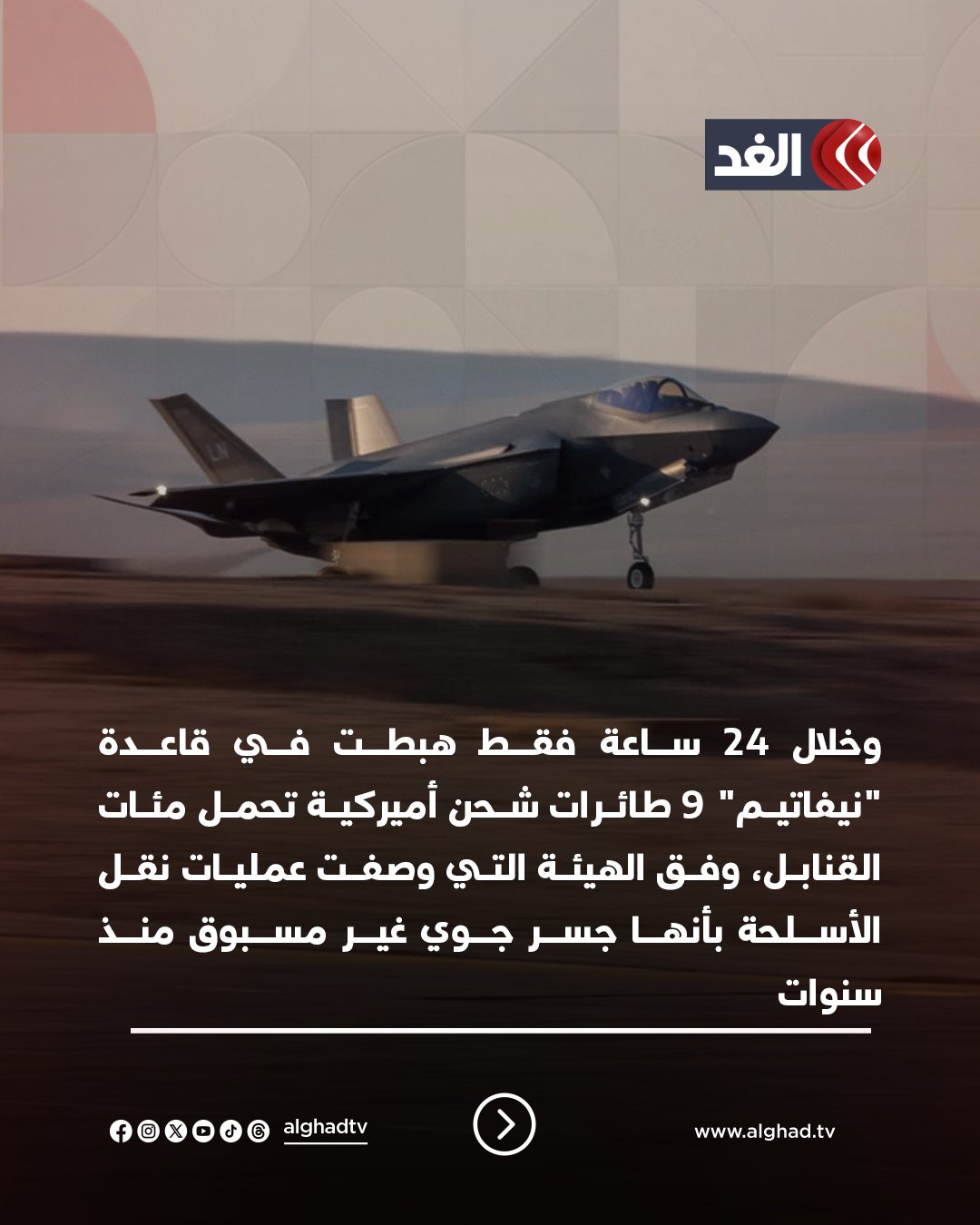 خلال 24 ساعة.. 9 طائرات شحن أميركية تهبط في قاعدة نيفاتيم الإسرائيلية محملة بالقنابل في جسر جوي غير مسبوق منذ سنوات