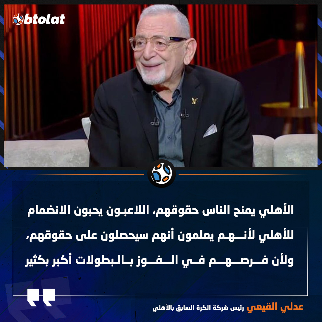 عدلي القيعي. الأهلي يمنح الناس حقوقهم، اللاعبون يحبون الانضمام للأهلي لأنهم يعلمون أنهم سيحصلون على حقوقهم، ولأن فرصهم في الفوز بالبطولات أكبر بكثير