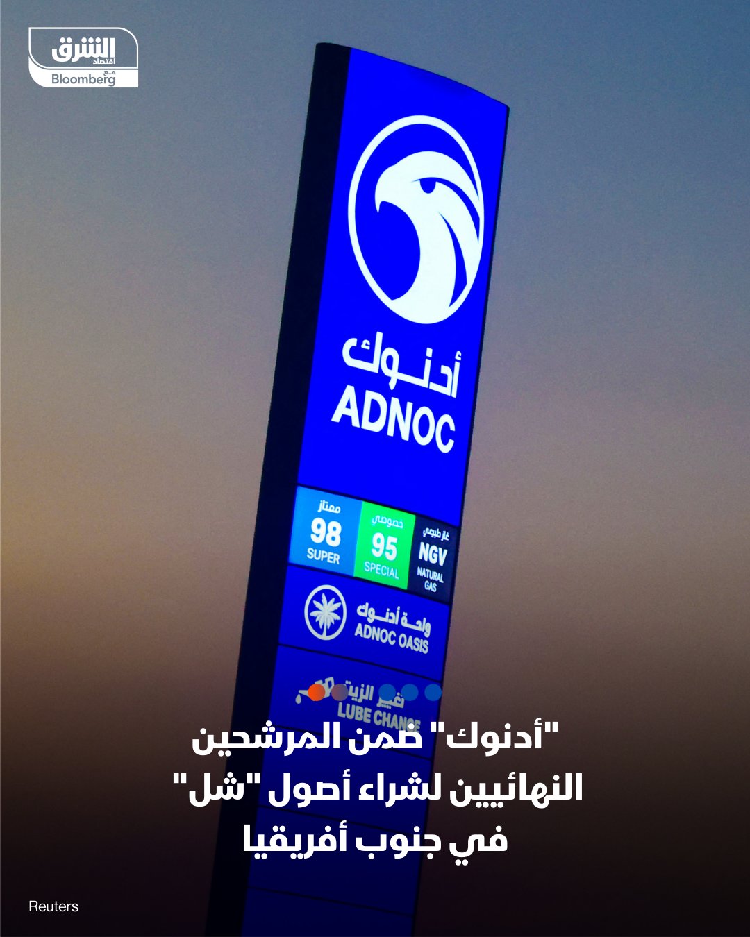شركة أدنوك الإماراتية وشركة "غنفور" السويسرية لتجارة السلع تدخلان ضمن قائمة المرشحين النهائيين للاستحواذ على أصول "شل" بجنوب أفريقيا. الشركتان تُعدّان من أبرز المتنافسين على الأصول التي تُقدّر قيمتها بنحو مليار دولار. #اقتصاد_الشرق