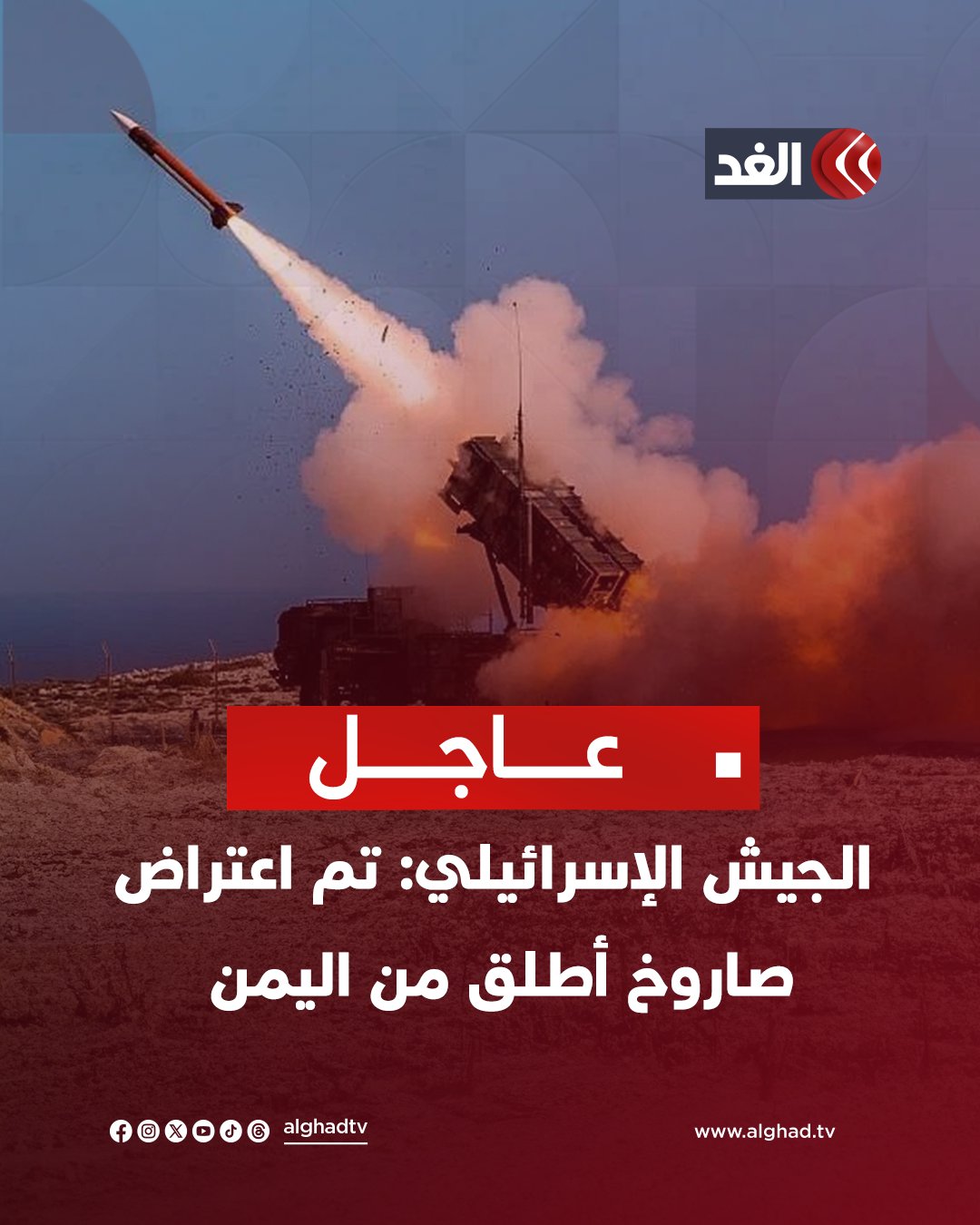 عاجل| الجيش الإسرائيلي: تم اعتراض صاروخ أطلق من #اليمن