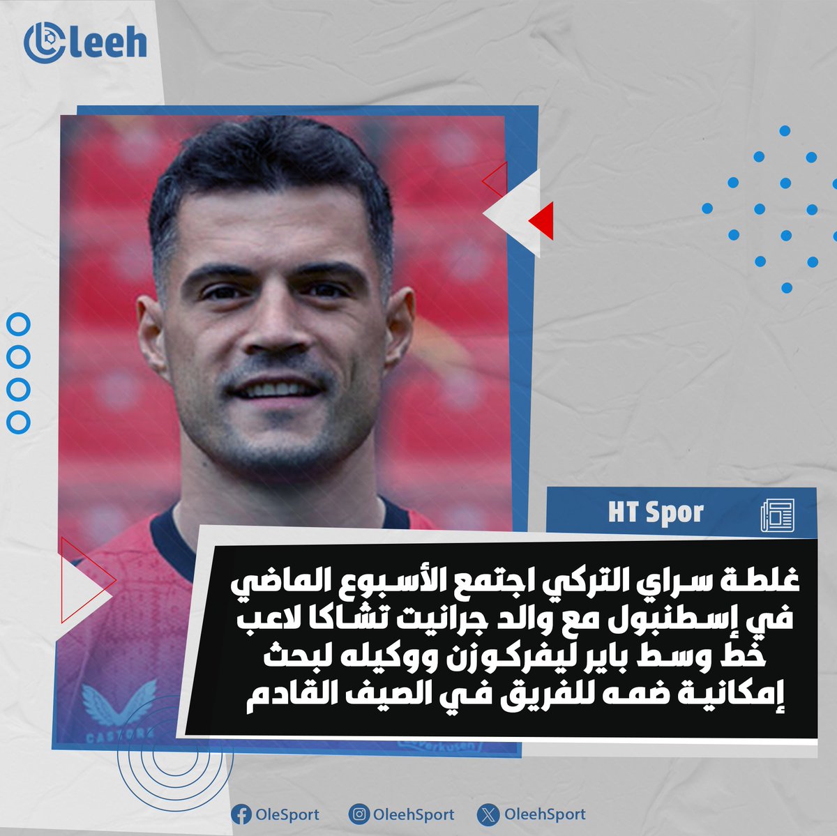 عقد نادي غلطة سراي التركي اجتماعاً في إسطنبول الأسبوع الماضي مع والد جرانيت تشاكا لاعب خط وسط باير ليفركوزن ووكيل أعماله، في إطار مساعيه لتعزيز صفوف الفريق بصفقة قوية خلال فترة الانتقالات الصيفية المقبلة