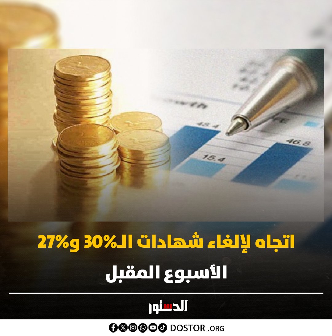 كشفت مصادر مصرفية عن اتجاه البنوك لإلغاء شهادات ال30% و27% الأسبوع المقبل، بعد قيام البنك المركزي بخفض سعر العائد على الإيداع والإقراض