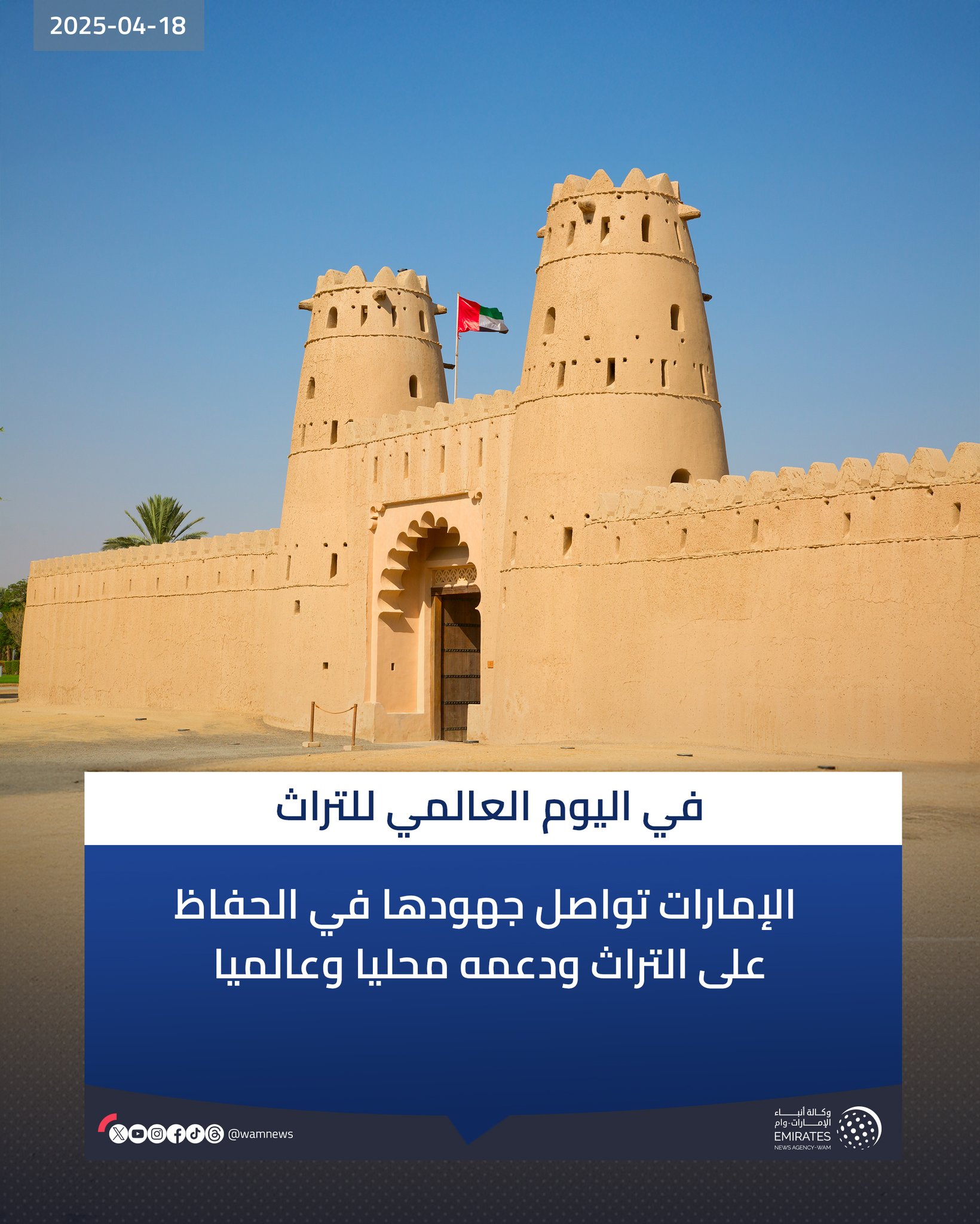 وأضاف أن الاحتفال بهذه المناسبة يأتي من منطلق الالتزام الوطني بإبراز الجهود التي تبذلها دولة الإمارات في الحفاظ على التراث ودعمه على الصعيدين المحلي والعالمي، حيث تعد سباقة في صون تراثها وهويتها، كما تواصل جهودها البارزة منذ مصادقتها على اتفاقية حماية التراث العالمي الثقافي.....