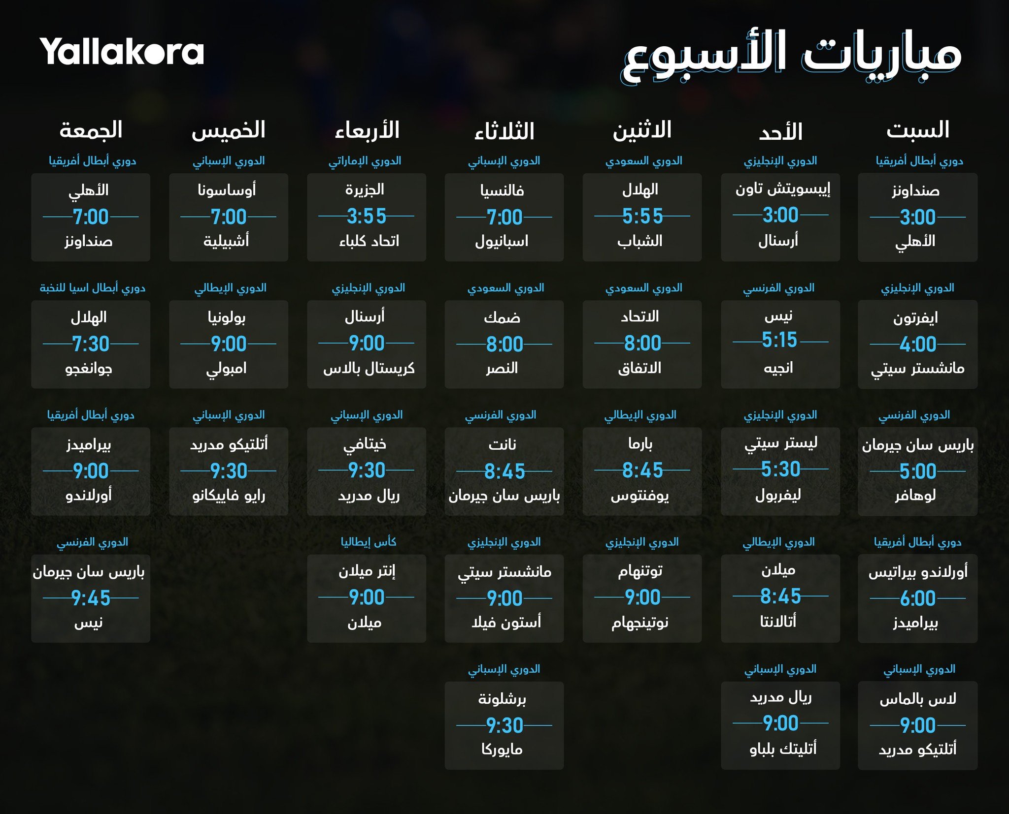الأهلي ضد صنداونز. بيراميدز ضد أورلاندو. مواجهات قوية في الدوريات الأوروبية. إليكم جدول مباريات الإسبوع
