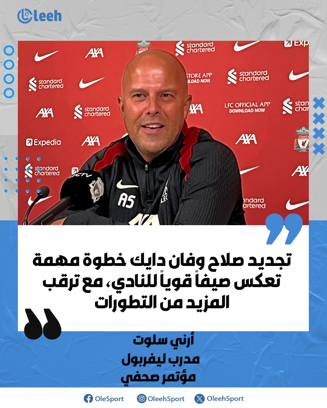 أرني سلوت من المؤتمر الصحفي.. "قمنا بتمديد عقود محمد صلاح وفان دايك وهذا يُعد خطوة مهمة تُعزز من قوة الفريق، ما يجعل هذا الصيف بالفعل من أبرز الفترات للنادي، وسنترقب ما سيحمله المستقبل من تطورات"