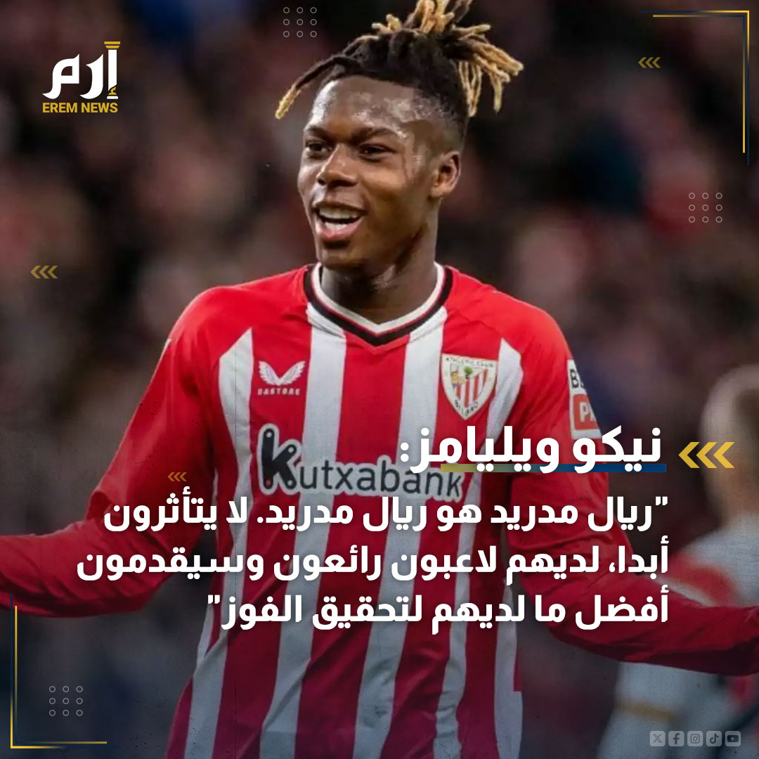 نيكو ويليامز لاعب بيلباو قبل مواجهة ريال مدريد: "ريال مدريد هو ريال مدريد. لا يتأثرون أبدا، لديهم لاعبون رائعون وسيقدمون أفضل ما لديهم لتحقيق الفوز"