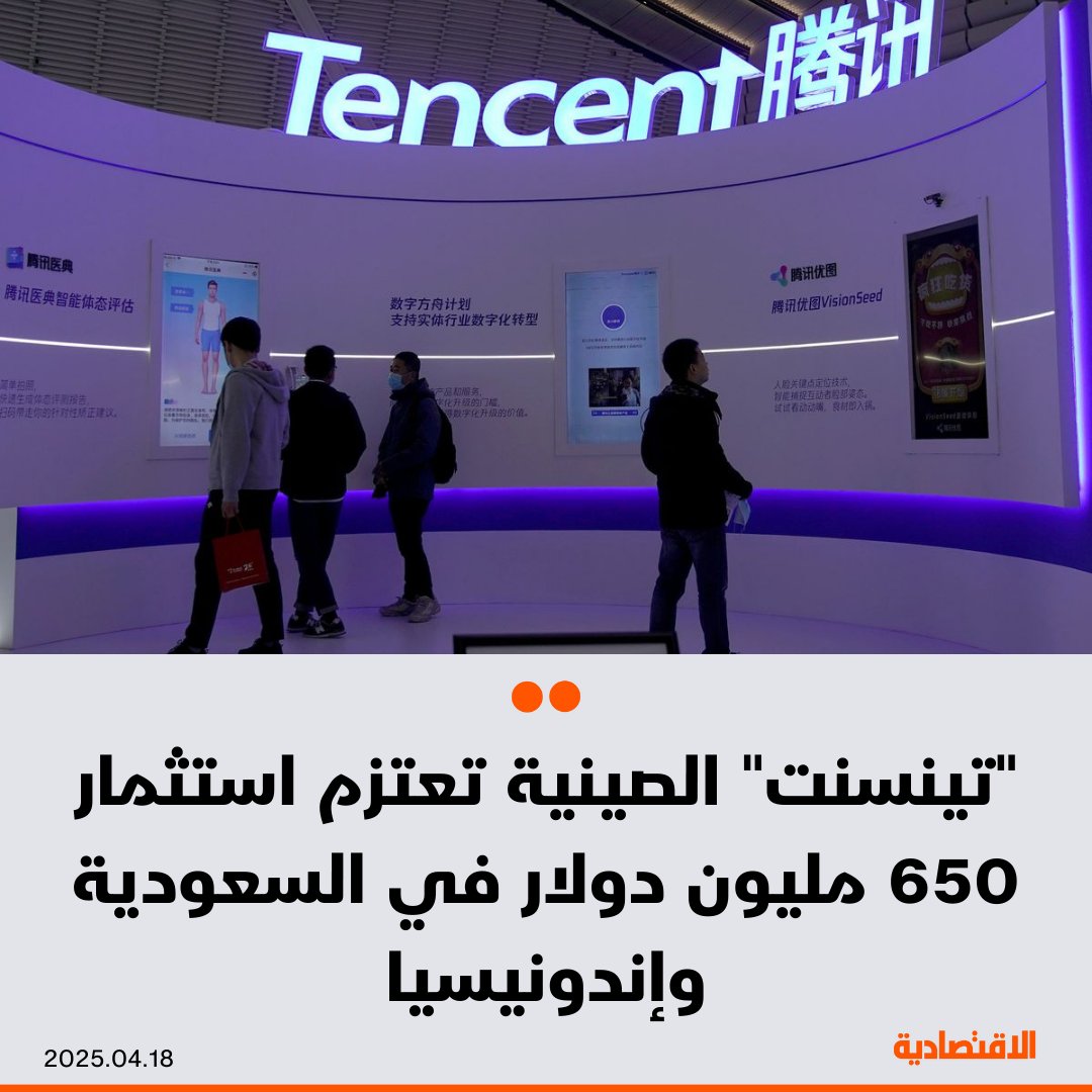تعتزم شركة "تينسنت" ضخ استثمارات بقيمة 650 مليون دولار لتوسيع بنيتها التحتية الرقمية في الخارج، تشمل إنشاء أول مركز بيانات لها في السعودية بتكلفة 150 مليون دولار، وفق ما نقلته صحيفة "سينشري بيزنس هيرالد" (Century Business Herald عن نائب رئيس المجموعة لي تشيانغ.