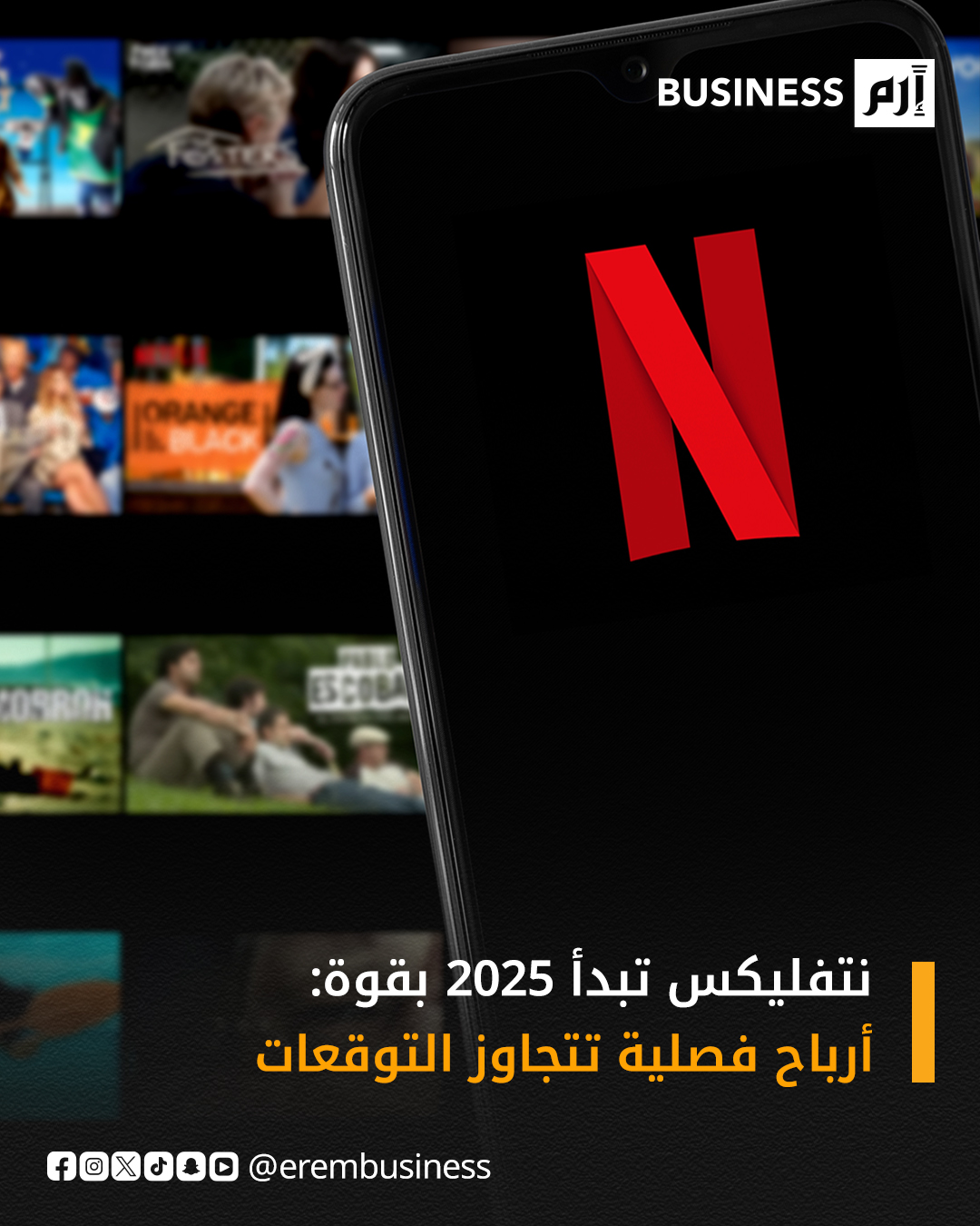 نتفليكس تبدأ عام 2025 بقوة: أرباح فصلية تتجاوز التوقعات وتصل إلى 2.9 مليار دولار