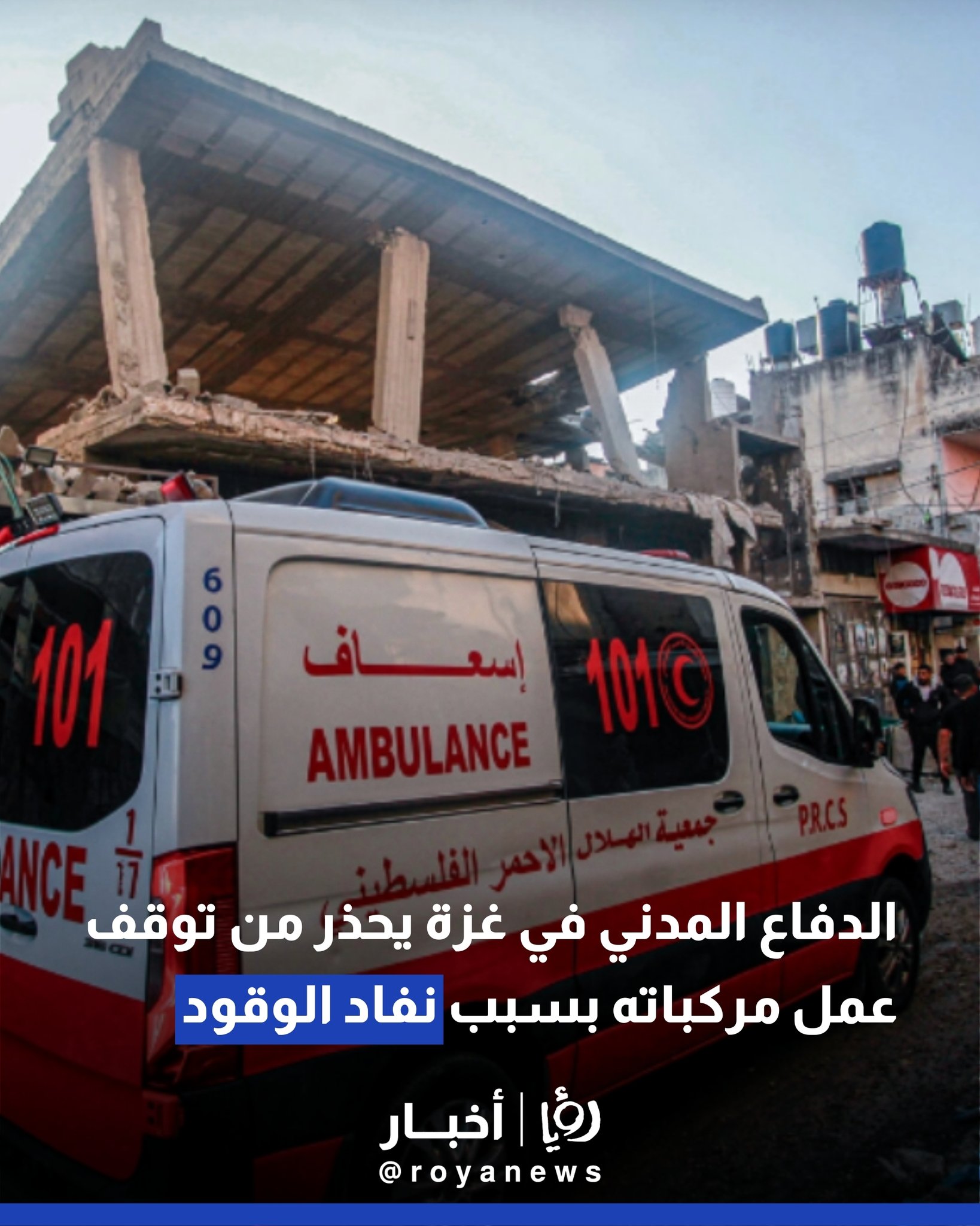وأكد الدفاع المدني في بيان عاجل أن طواقمه لن تكون قادرة على الاستجابة للتدخلات والنداءات الإنسانية خلال الأيام المقبلة، إذا ما استمر منع إدخال الوقود إلى القطاع المحاصر.
