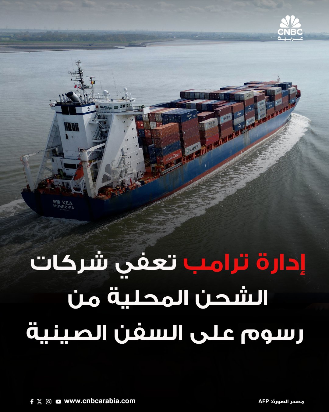 إدارة الرئيس الأميركي دونالد ترامب أعلنت إعفاء المصدّرين المحليين ومُلاك السفن التي تخدم الموانئ الأميركية في البحيرات العظمى ومنطقة الكاريبي والأقاليم التابعة للولايات المتحدة، من رسوم كان من المزمع فرضها على السفن المصنوعة في الصين، في خطوة تهدف إلى إعادة إحياء صناعة بناء السفن الأميركية. التفاصيل