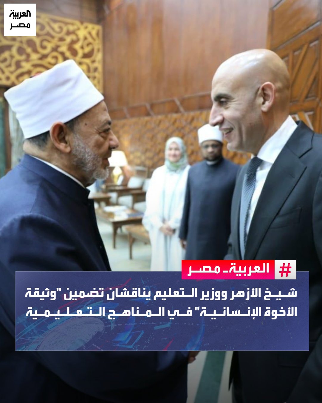 ناقش الإمام أحمد الطيب شيخ الأزهر مع محمد عبداللطيف وزير التربية والتعليم، تضمين "وثيقة الأخوة الإنسانية" التاريخية، التي وقعها شيخ الأزهر مع البابا فرنسيس عام 2019، في مناهج التعليم قبل الجامعي، مؤكدًا أهمية بنود الوثيقة في نشر قيم التعايش والأخوة، وتعزيز ثقافة احترام الآخر.. من جهته، رحب وزير التعليم بالمقترح، مؤكدًا دراسة كيفية تضمين نصوص الوثيقة والاستفادة منها على أكمل وجه، وذلك خلال لقائه بالإمام الأكبر، اليوم، بمشيخة الأزهر، لبحث سبل تعزيز التعاون المشترك. _مصر