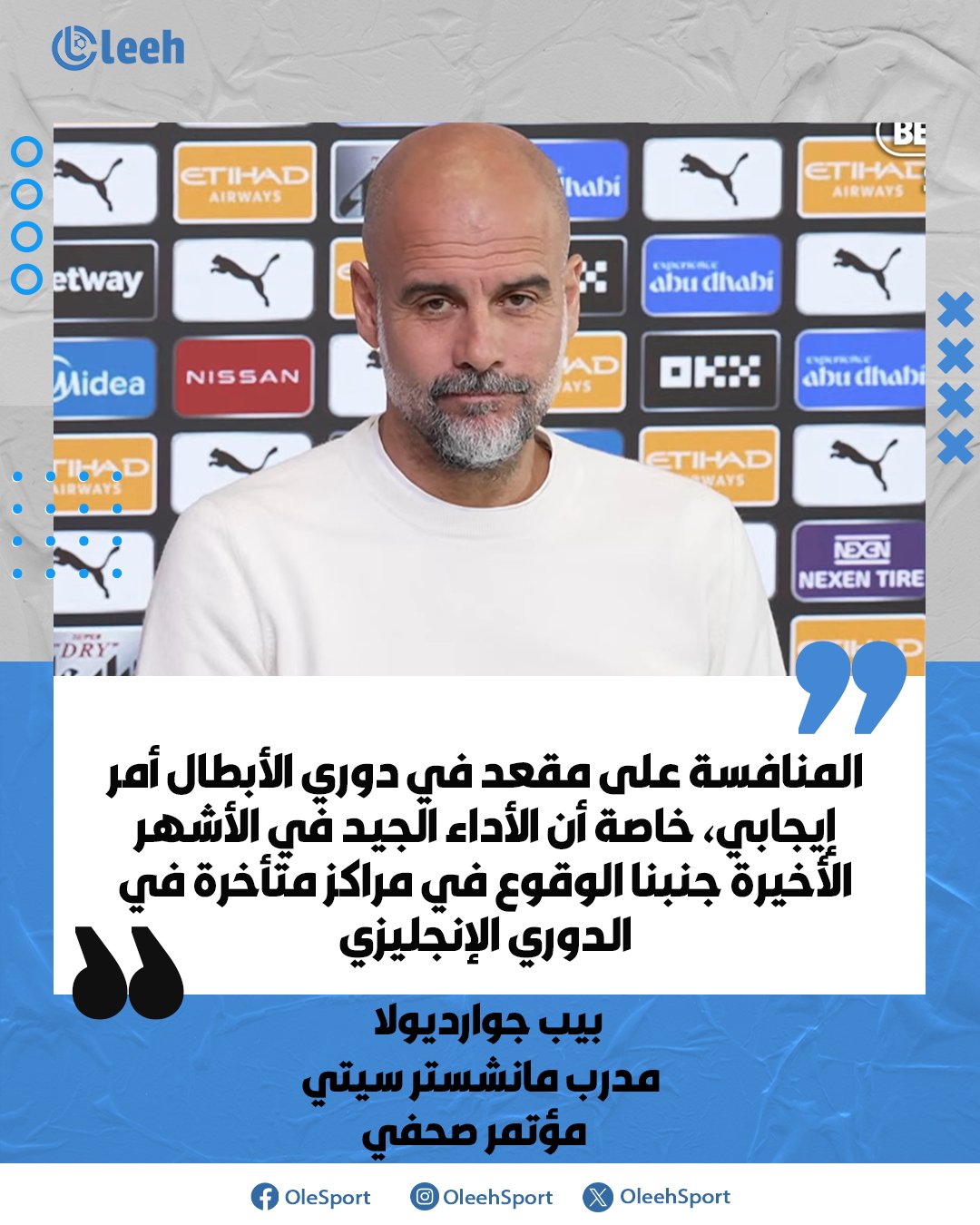 بيب غوارديولا من المؤتمر الصحفي: "السعي للتأهل إلى دوري الأبطال يُعد إنجازاً، وذلك بعد الأداء القوي في الأشهر الماضية حال دون تراجعنا إلى مراكز متدنية في البريميرليج"