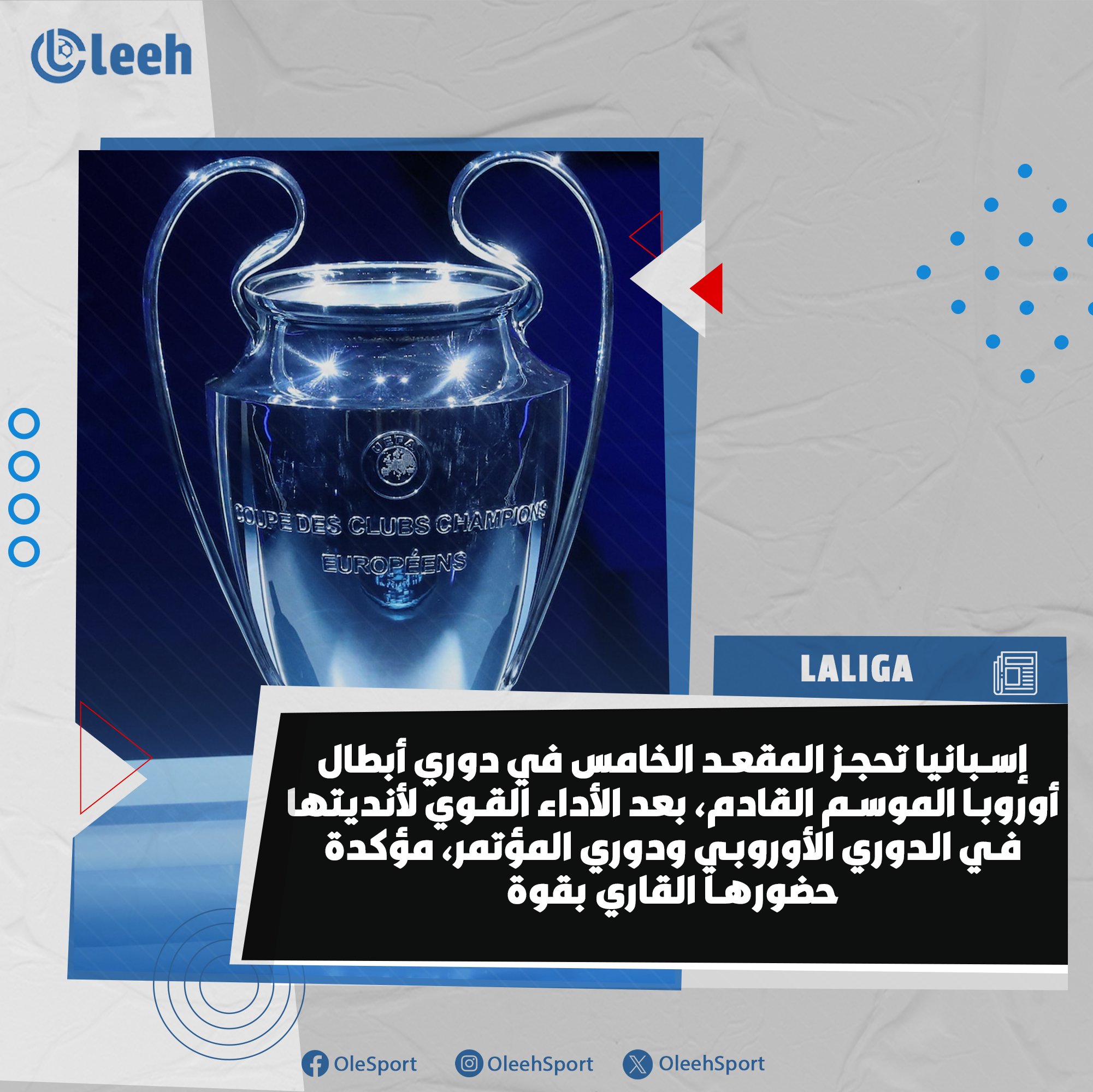 الأندية الإسبانية تواصل تألقها أوروبياً وتمنح الليغا مقعداً خامساً في دوري أبطال أوروبا الموسم المقبل، بفضل نتائجها المميزة في الدوري الأوروبي ودوري المؤتمر الأوروبي