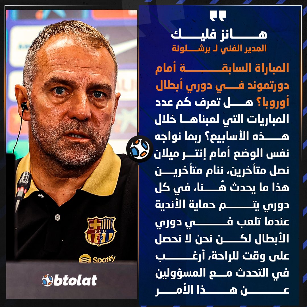 هانز فليك: المباراة السابقة أمام دورتموند في دوري أبطال أوروبا؟ "نصل متأخرين، ننام متأخرين" في كل دوري يتم حماية الأندية عندما تلعب في دوري الأبطال لكن نحن لا نحصل على وقت للراحة