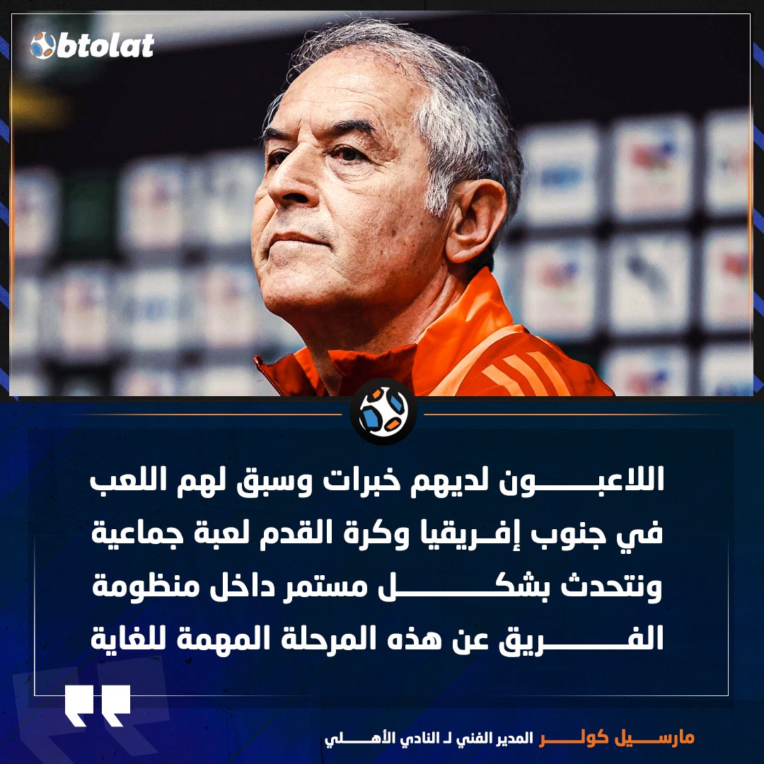 مارسيل كولر "خلال المؤتمر الصحفي ل مباراة صن داونز". اللاعبون لديهم خبرات وسبق لهم اللعب في جنوب إفريقيا وكرة القدم لعبة جماعية ونتحدث بشكل مستمر عن هذه المرحلة المهمة للغاية