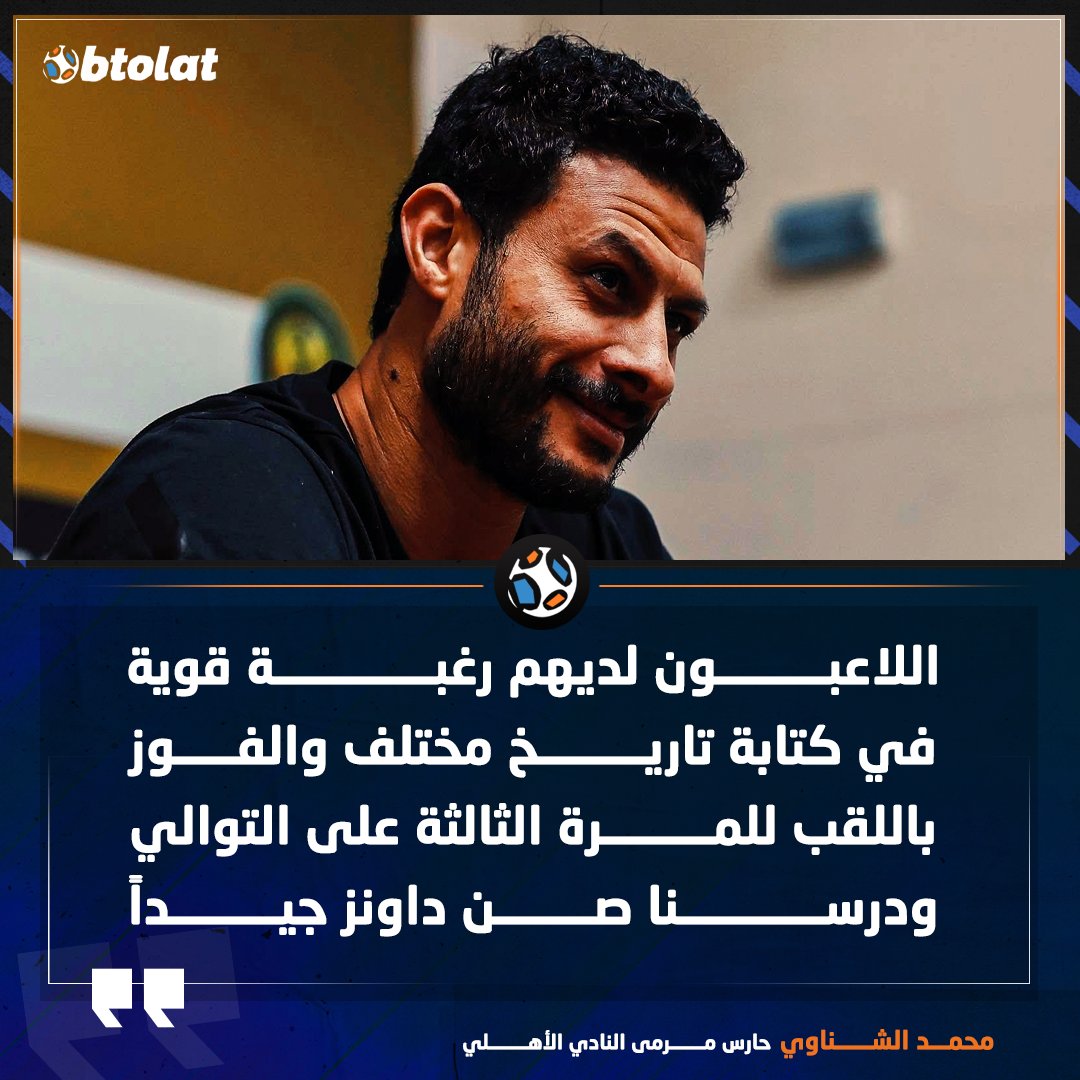 محمد الشناوي "خلال المؤتمر الصحفي ل مباراة صن داونز". اللاعبون لديهم رغبة قوية في كتابة تاريخ مختلف والفوز باللقب للمرة الثالثة على التوالي ودرسنا صن داونز جيداً