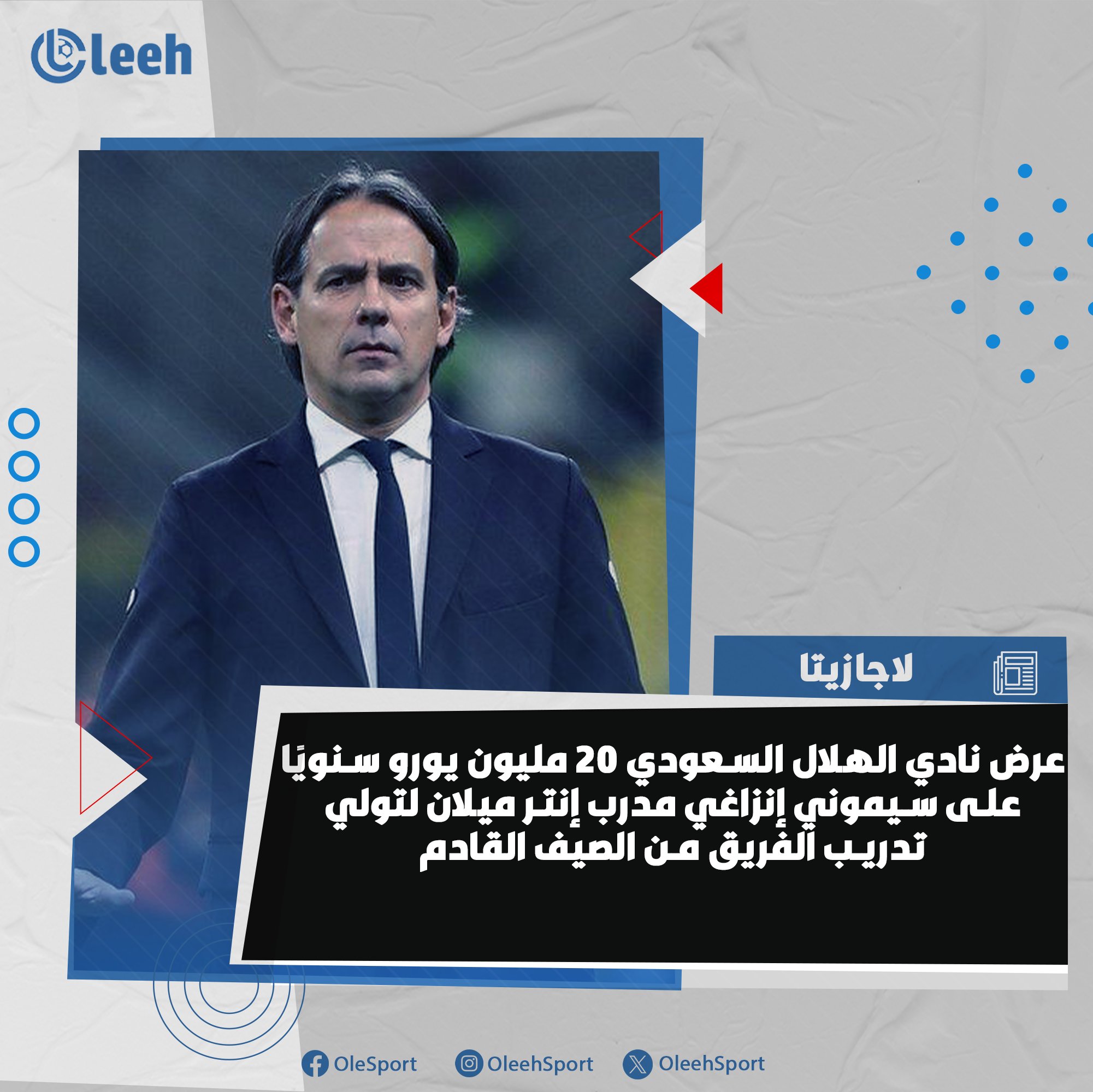 قدّم نادي الهلال السعودي عرضًا ضخمًا لسيموني إنزاغي إنتر ميلان، بلغت قيمته 20 مليون يورو سنويًا، وذلك في إطار مساعيه للتعاقد معه لتولي القيادة الفنية للفريق بدءًا من صيف العام الجاري
