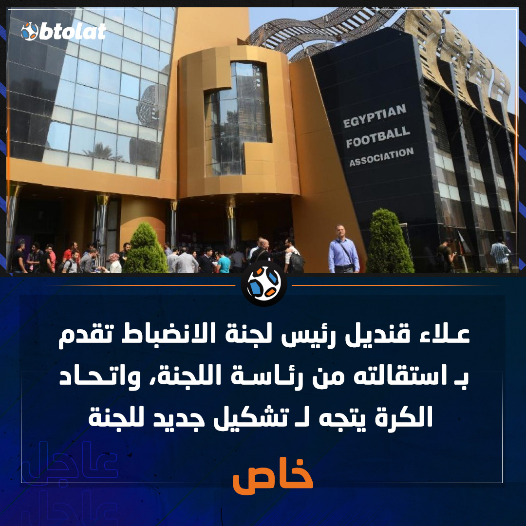 خاص ل بطولات. علاء قنديل رئيس لجنة الانضباط تقدم ب استقالته من رئاسة اللجنة.. واتحاد الكرة يتجه ل تشكيل جديد للجنة