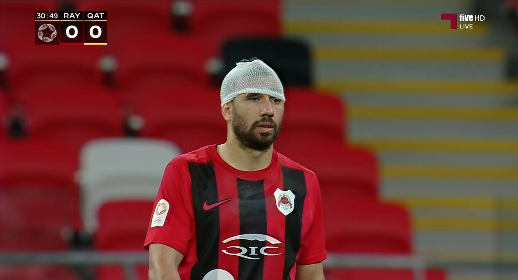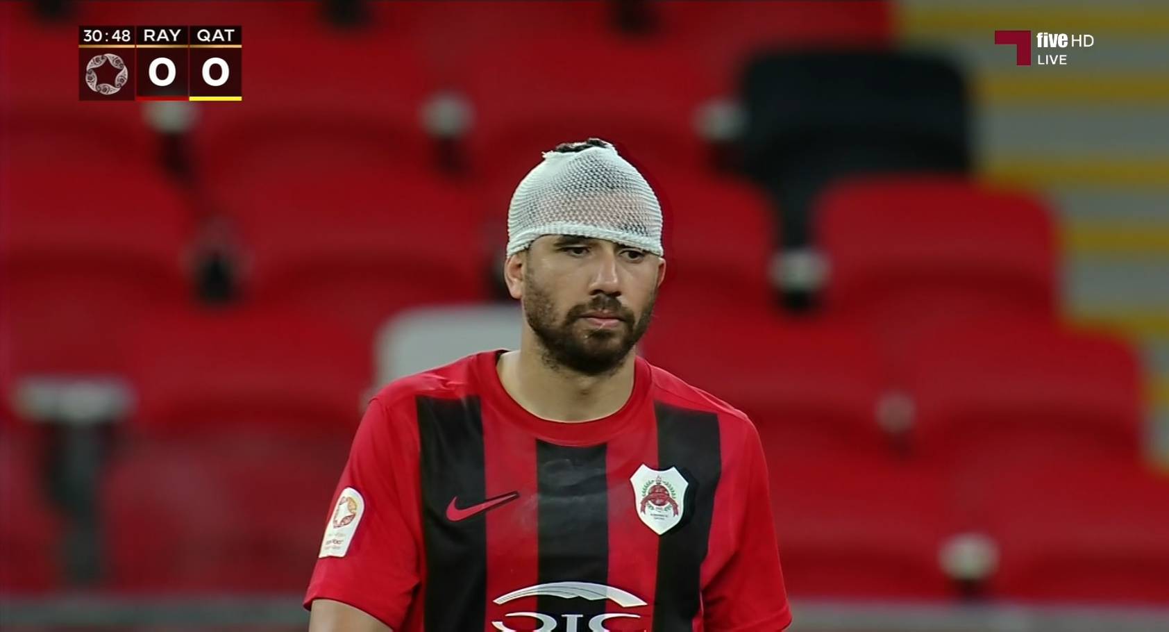 محمود تريزيجيه يتعرض للإصابة في الرأس خلال مباراة الريان وقطر بالدوري القطري