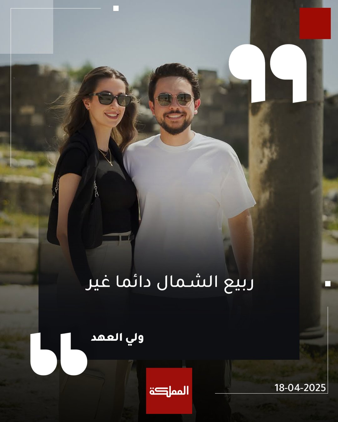 ولي العهد في صورة تجمعه بالأميرة رجوة الحين عبر صفحته الرسمية بموقع انستغرام: "ربيع الشمال دائما غير" #الأردن