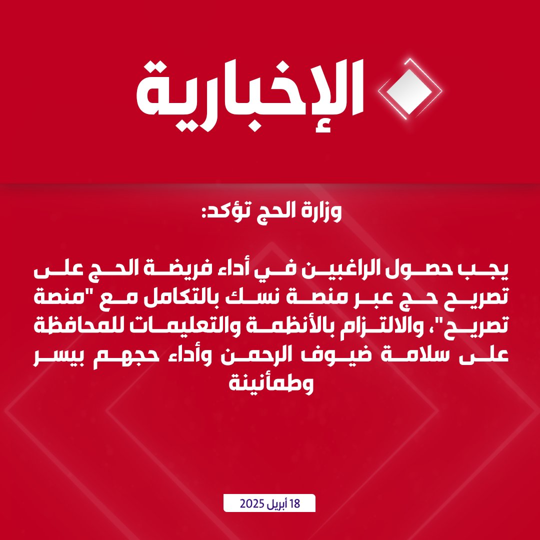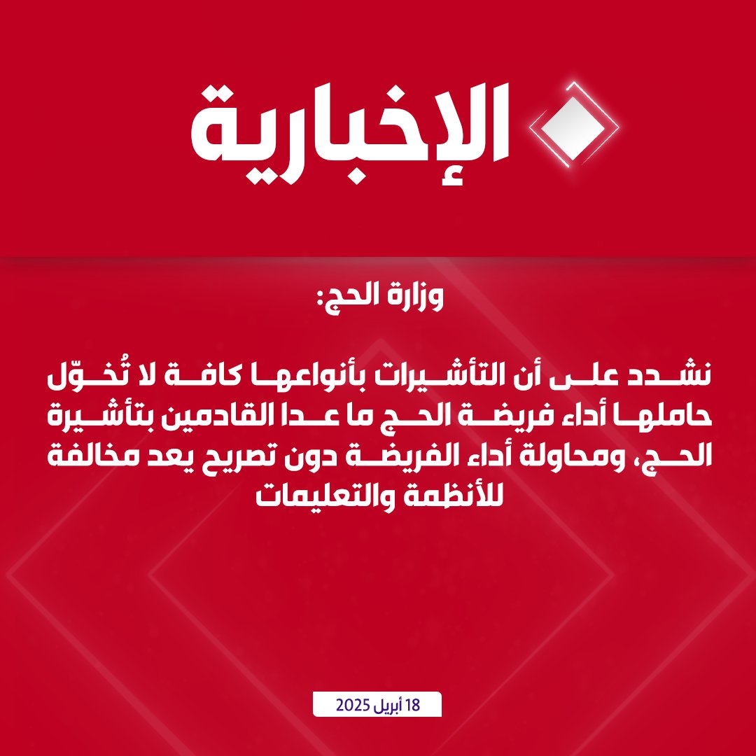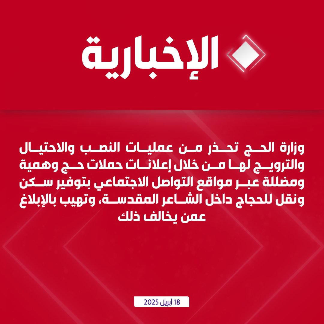 عاجل | في بيان رسمي.. وزارة الحج: احذروا من محاولة الحج بلا تصريح الإخبارية | #لا_حج_بلا_تصريح