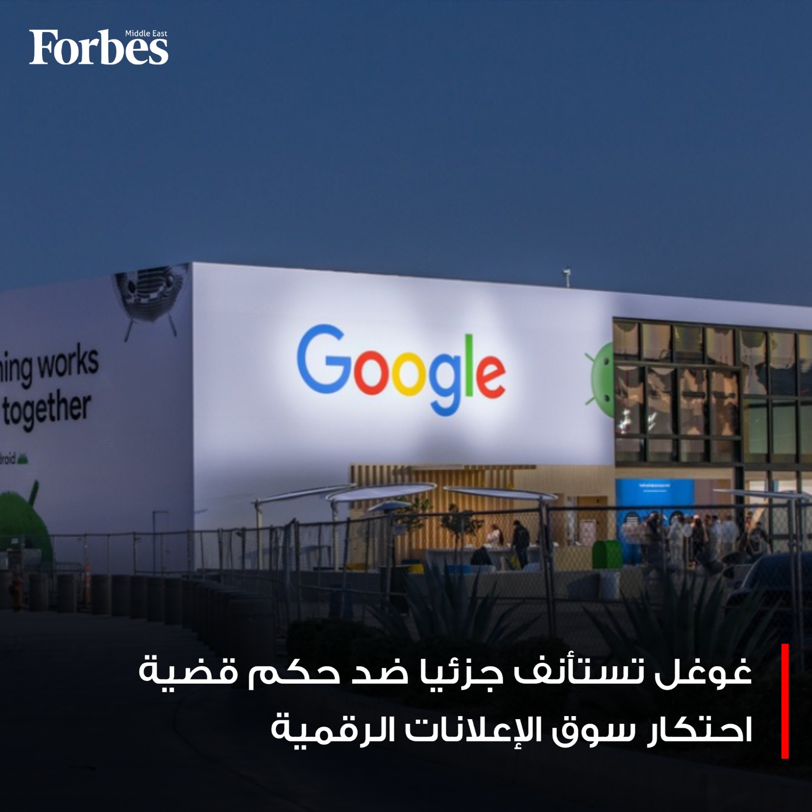 غوغل تعتزم الاستئناف جزئيًا ضد حكم قضائي أميركي قضى بتعمدها اكتساب نفوذ احتكاري في سوقَي خوادم الإعلانات وتبادل الإعلانات الرقمية، وذلك ضمن القضية التي رفعتها وزارة العدل الأميركية ضد هيمنة شركات التكنولوجيا الكبرى. فوربس للمزيد