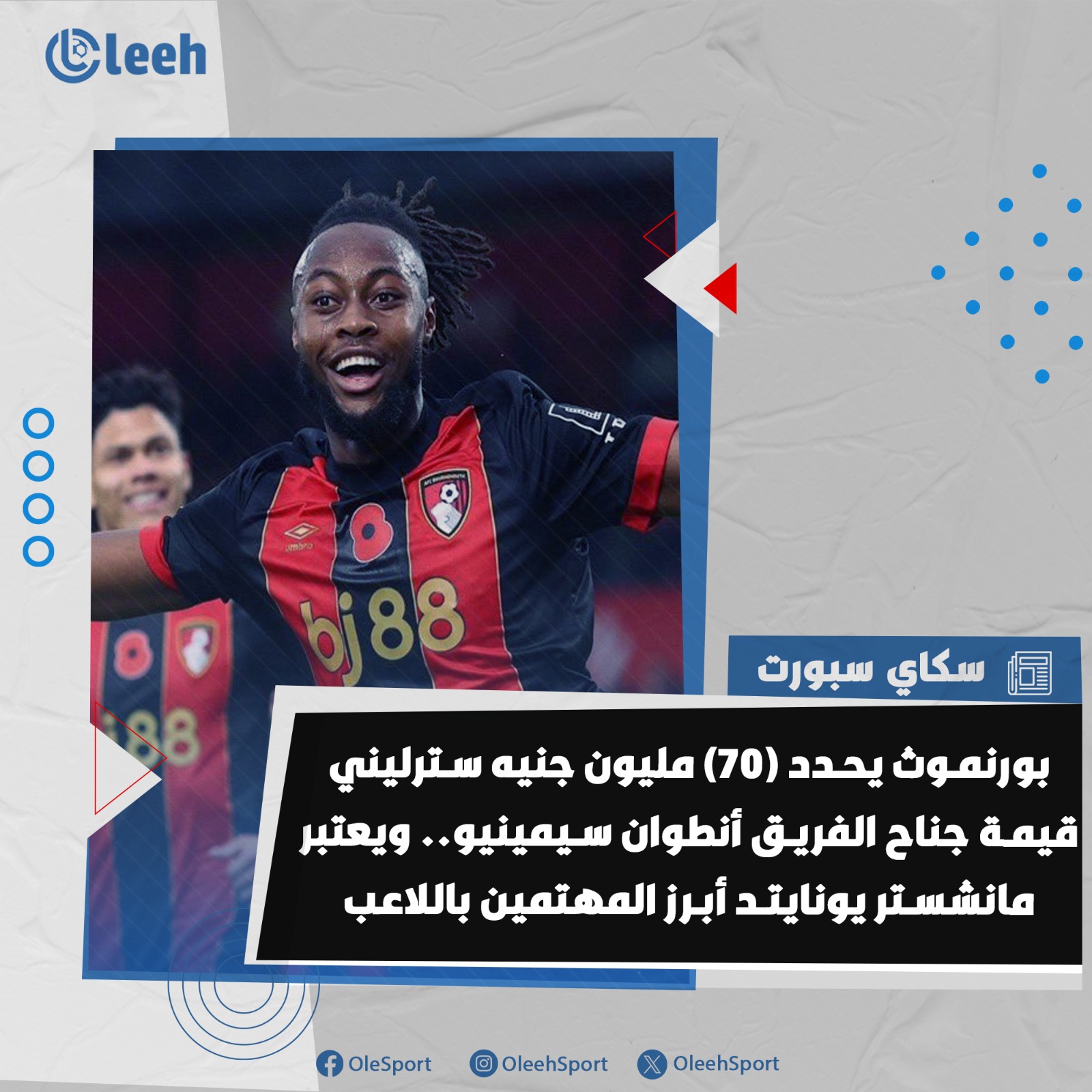 سكاي سبورت | مانشستر يونايتد أبرز المُهتمين بالتعاقد مع أنطوان سيمينيو جناح بورنموث.. ناديه يُقدر قيمته ب 70 مليون جنيه سترليني
