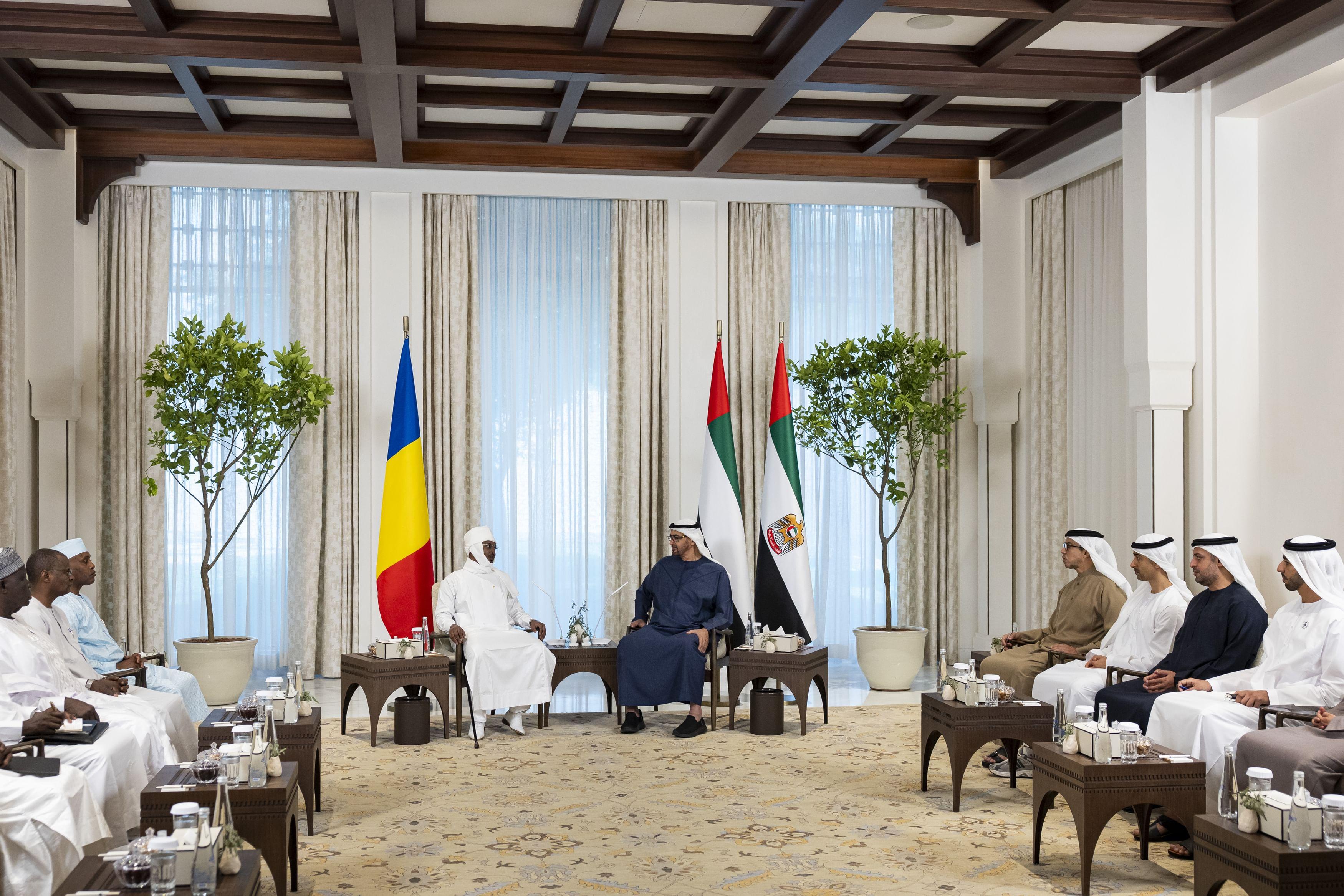 وأكد الجانبان، خلال المباحثات، الحرص على توسيع آفاق التعاون بين الإمارات وتشاد واستثمار الفرص المتاحة في هذا الشأن وخاصة في مجالات التجارة والاقتصاد والاستثمار والطاقة والبنية التحتية وغيرها، بما يخدم التنمية المشتركة للبلدين ويعود بالخير والنماء على شعبيهما.