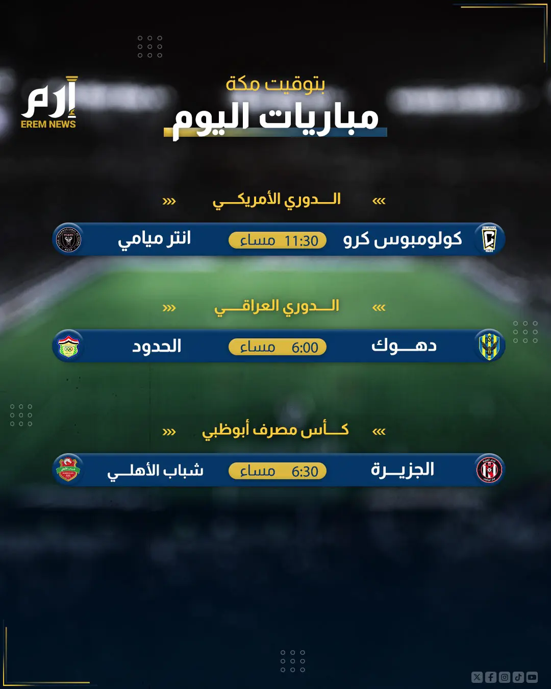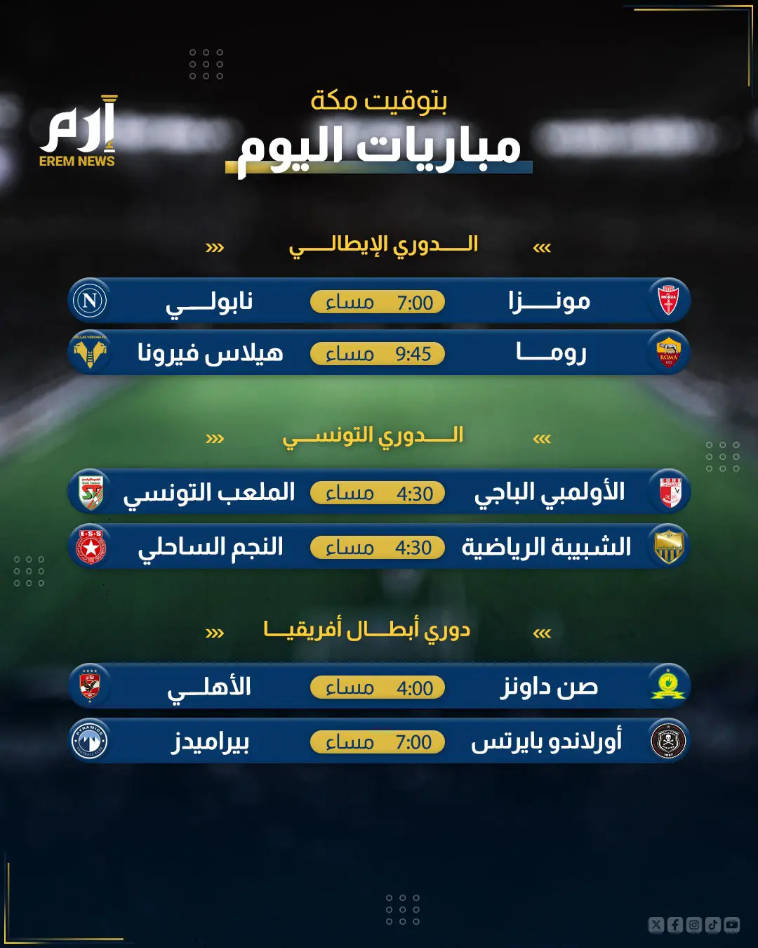 وفيما يلي مواعيد أبزر مباريات اليوم السبت 19 أبريل 2025 بتوقيت مكة المكرمة والقنوات الناقلة: