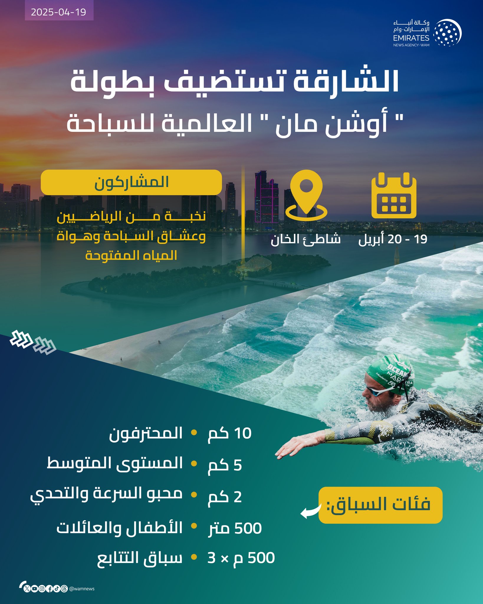الشارقة تستضيف بطولة "أوشن مان " العالمية للسباحة #وام