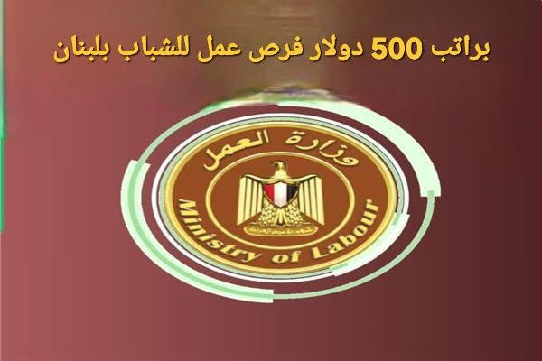 تواصل وزارة العمل تلقي طلبات وظائف أعلن عنها، وزير العمل بتوفير فرص عمل في لبنان براتب 500 دولار بما يساوي 25,565 جنيها شهريا.