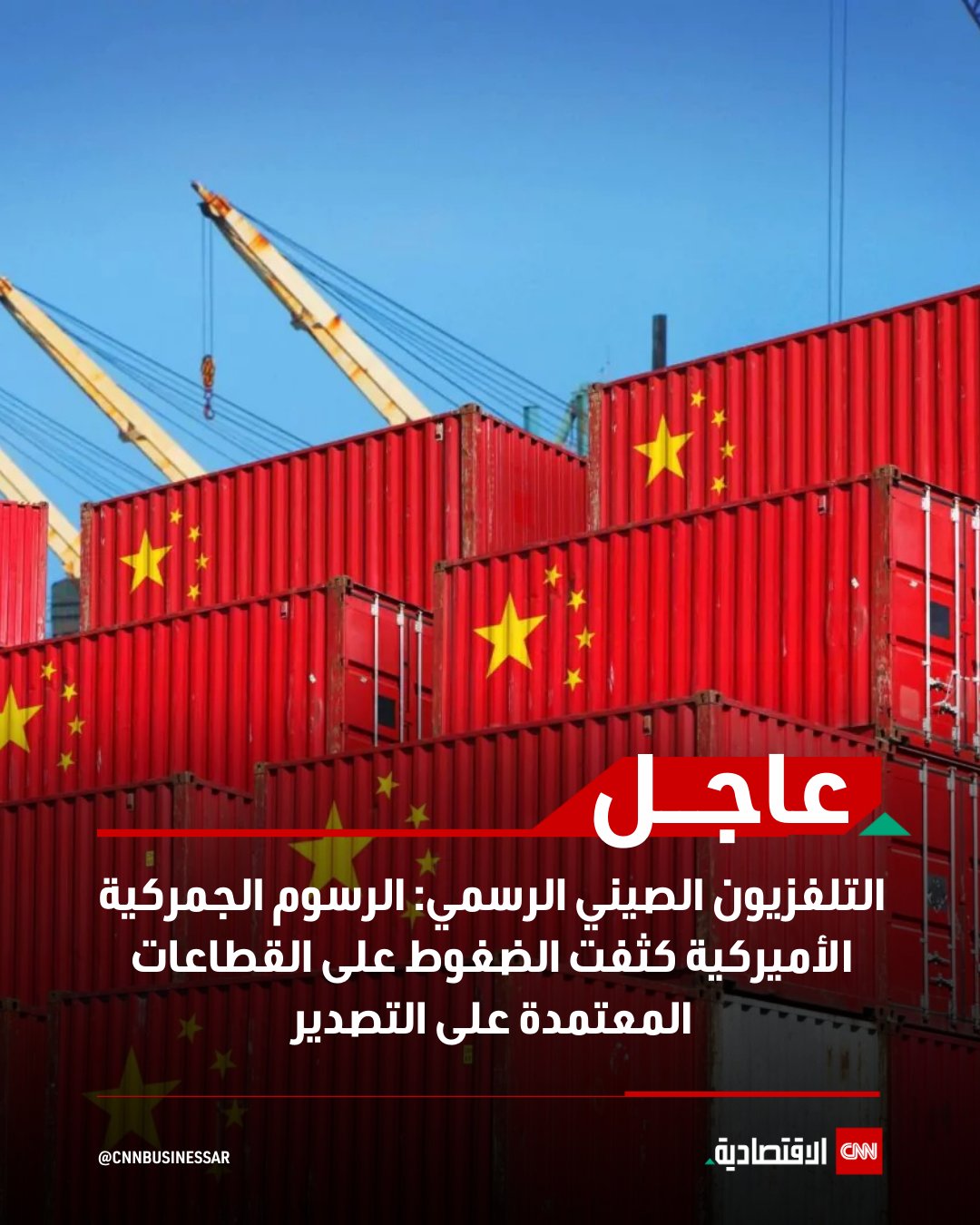 عاجل | التلفزيون الصيني الرسمي: الرسوم الجمركية الأميركية كثفت الضغوط على القطاعات المعتمدة على التصدير #العالم_بلغة_الأعمال