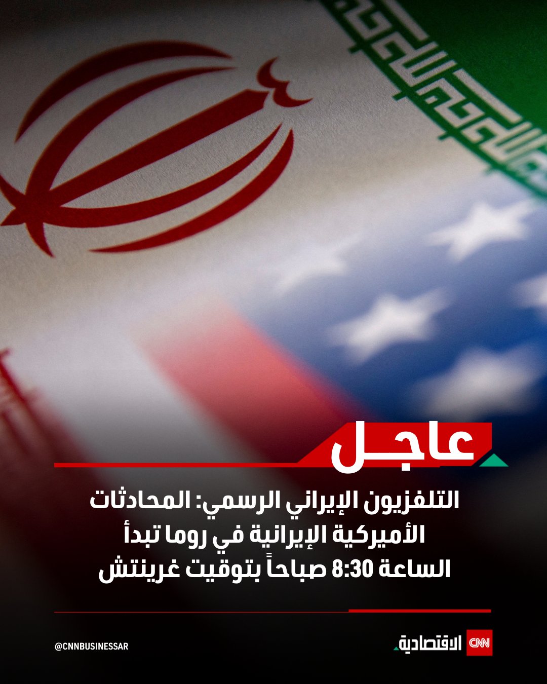 عاجل | التلفزيون الإيراني الرسمي: المحادثات الأميركية الإيرانية في روما تبدأ الساعة 8:30 صباحاً بتوقيت غرينتش #العالم_بلغة_الأعمال