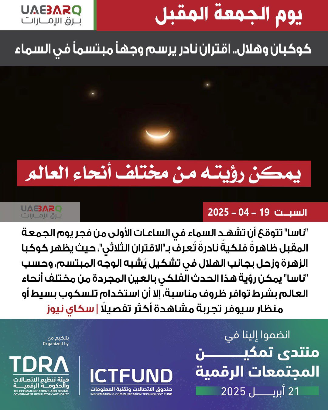 كوكبان وهلال.. اقتران نادر يرسم وجهاً مبتسماً في السماء يوم الجمعة المقبل | سكاي نيوز