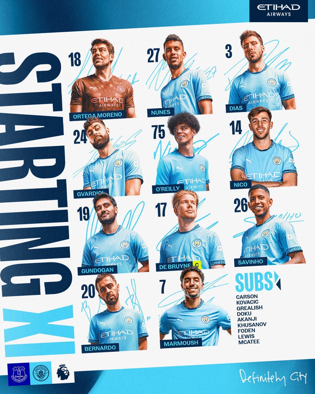 التشكيل الرسمي لمانشستر سيتي وإيفرتون لمباراة اليوم في الدوري الإنجليزي