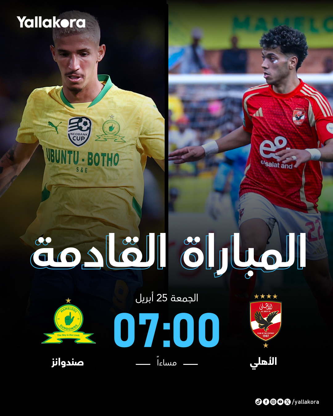 المباراة القادمة. الأهلي صنداونز. إياب نصف نهائي دوري أبطال أفريقيا. 25 أبريل. 7:00