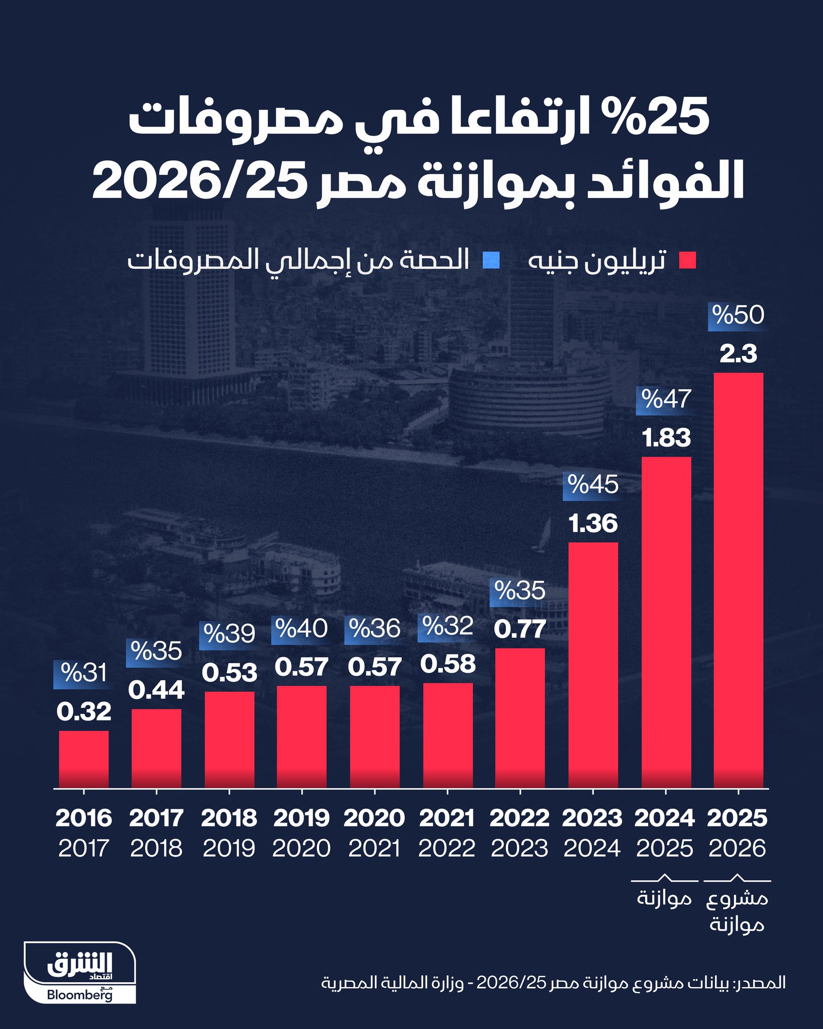 ارتفاع مصروفات فوائد الديون 25% إلى 2.3 تريليون دولار في مشروع موازنة مصر للعام المالي 2025-2026، وتشكل نصف إجمالي المصروفات #اقتصاد_الشرق
