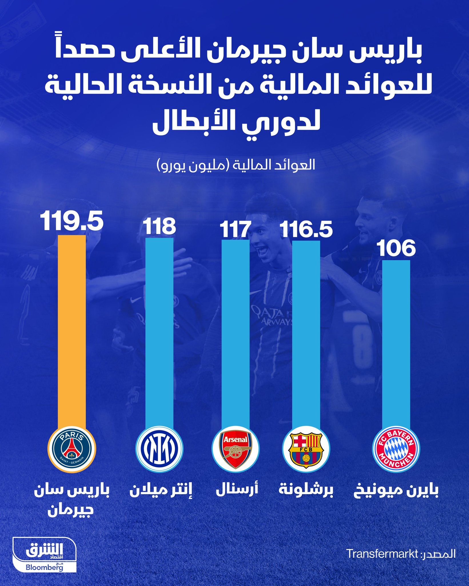 باريس سان جيرمان الفرنسي المملوك لشركة قطر للاستثمارات الرياضية هو أعلى الأندية حصداً للعوائد المالية من النسخة الحالية لبطولة دوري أوروبا بنحو 120 مليون يورو تقريبا #اقتصاد_الشرق