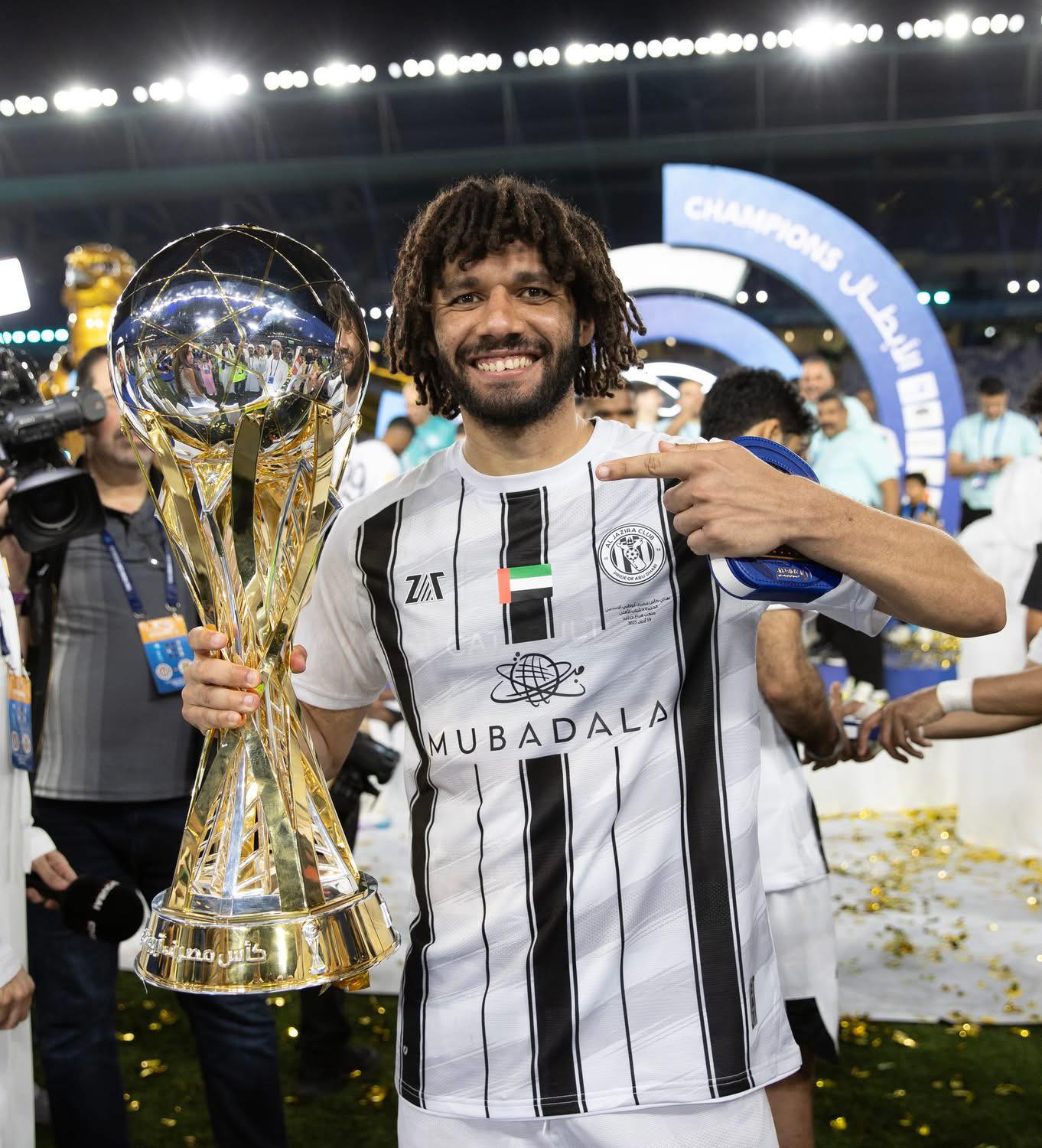 محمد النني يحتفل بالتتويج مع الجزيزة بكأس الرابطة الإماراتية