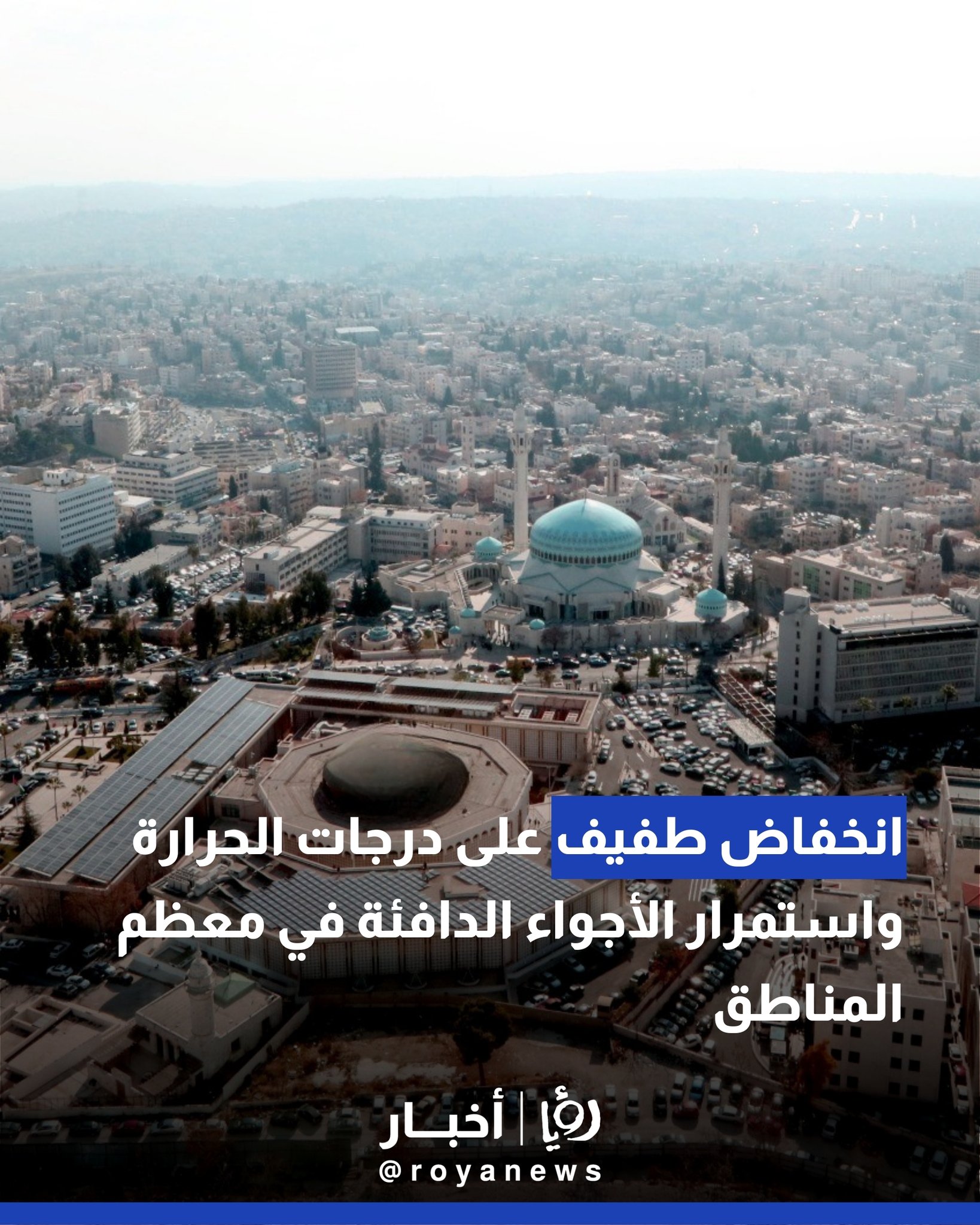 يشهد الأردن، الأحد، انخفاضًا طفيفًا على درجات الحرارة، مع بقاء الأجواء دافئة في أغلب المناطق، وحارة في الأغوار والبحر الميت والعقبة.