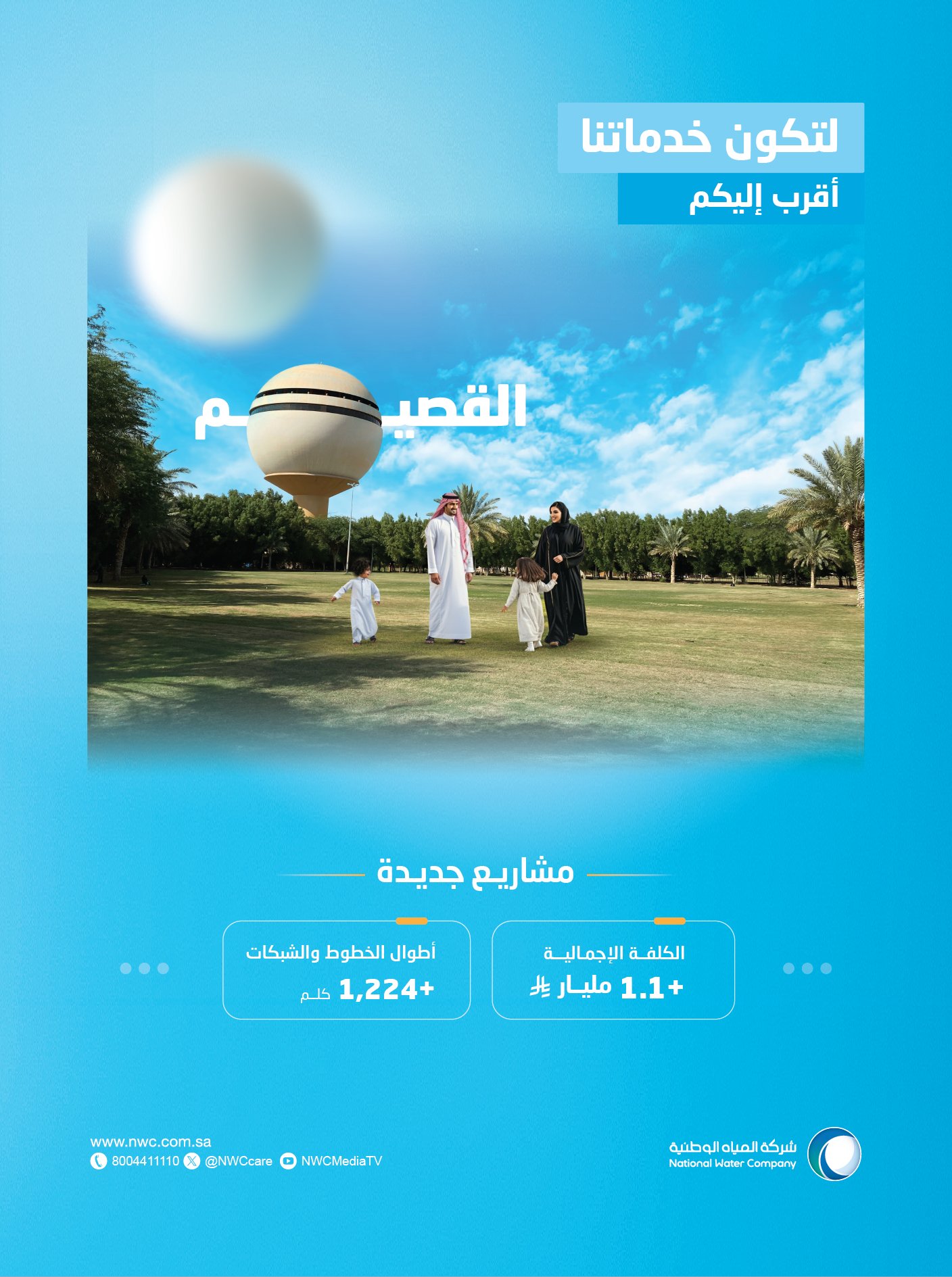 بدأت شركة المياه الوطنية، ممثلة بقطاعها الشمالي تنفيذ (16) مشروعًا مائيًا وبيئيًا في أنحاء متفرقة من منطقة القصيم بكُلفة إجمالية تجاوزت 1.1 مليار ريال؛ وذلك لزيادة نسب التغطية بالخدمات المائية والبيئية، وتحسين جودتها، ومواكبة الطلب المتزايد.