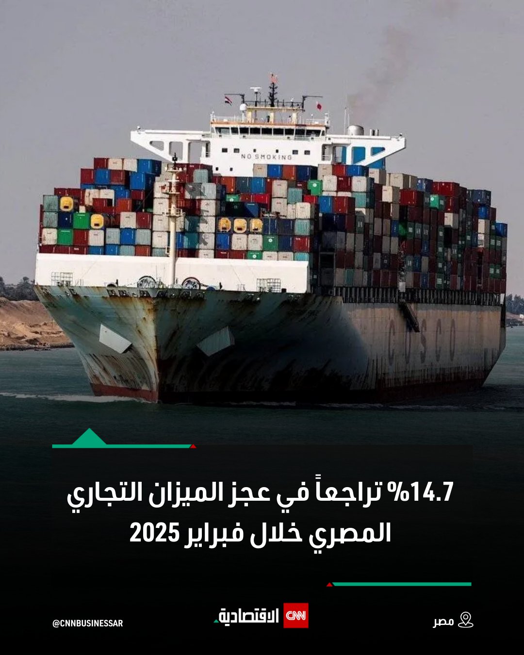 وعلى أساس شهري، انخفض عجز الميزان التجاري في مصر خلال فبراير شباط 2025 بنسبة 32 في المئة إلى 2.327 مليار دولار، بعدما كان قد سجل 3.420 مليار دولار في يناير كانون الثاني 2025.
