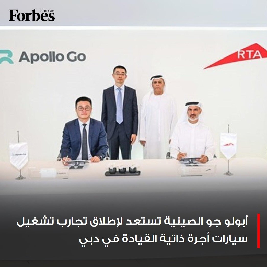 وقعت هيئة الطرق والمواصلات في دبي مذكرة تفاهم مع شركة أبولو جو التابعة لبايدو الصينية لإطلاق التجارب الشغيلية لمركبات أجرة ذاتية القيادة في 2025.