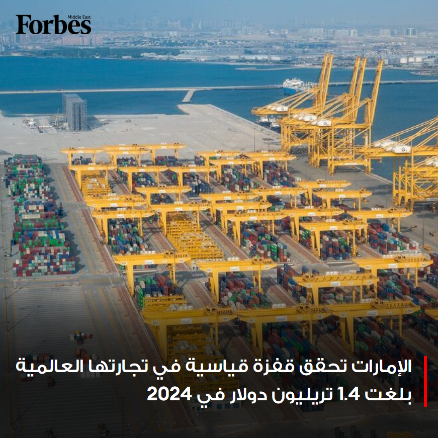 سجلت الإمارات قفزة قياسية في تجارتها العالمية خلال عام 2024، مع إجمالي قيمة للتجارة الخارجية للسلع والخدمات بلغ 5.23 تريليون درهم (1.424 تريليون دولار)، مقارنة بـ 3.5 تريليون درهم (949 مليار دولار) في عام 2021، وفقًا لتقرير "آفاق وإحصاءات التجارة العالمية" الصادر عن منظمة التجارة العالمية.