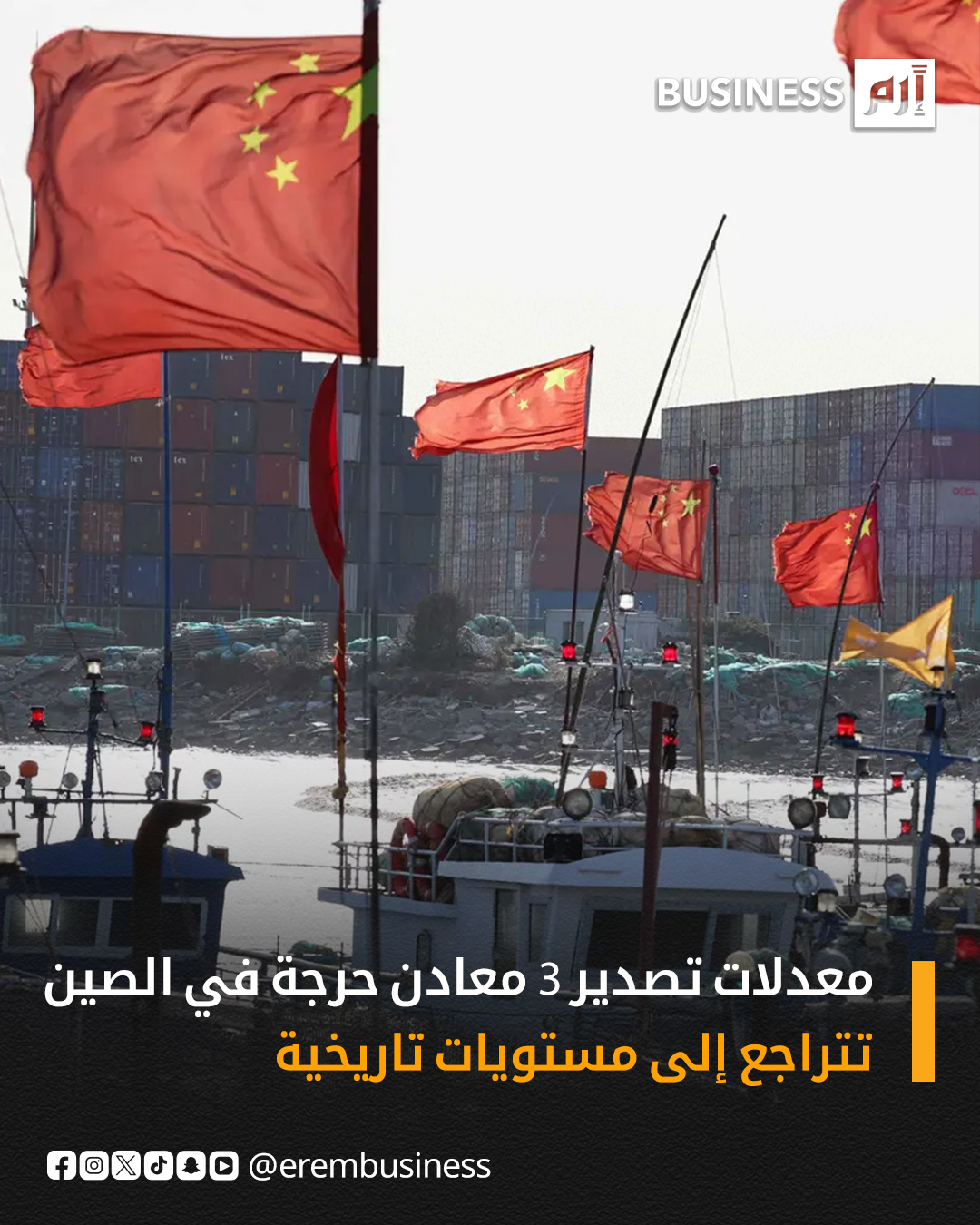 تراجعت معدلات تصدير ثلاثة معادن حرجة في قطاعي الدفاع والرقائق في الصين، تفرض عليها بكين ضوابط تصديرية، إلى أدنى مستويات تاريخية رغم ارتفاع الأسعار عالمياً، وفق بيانات صينية.