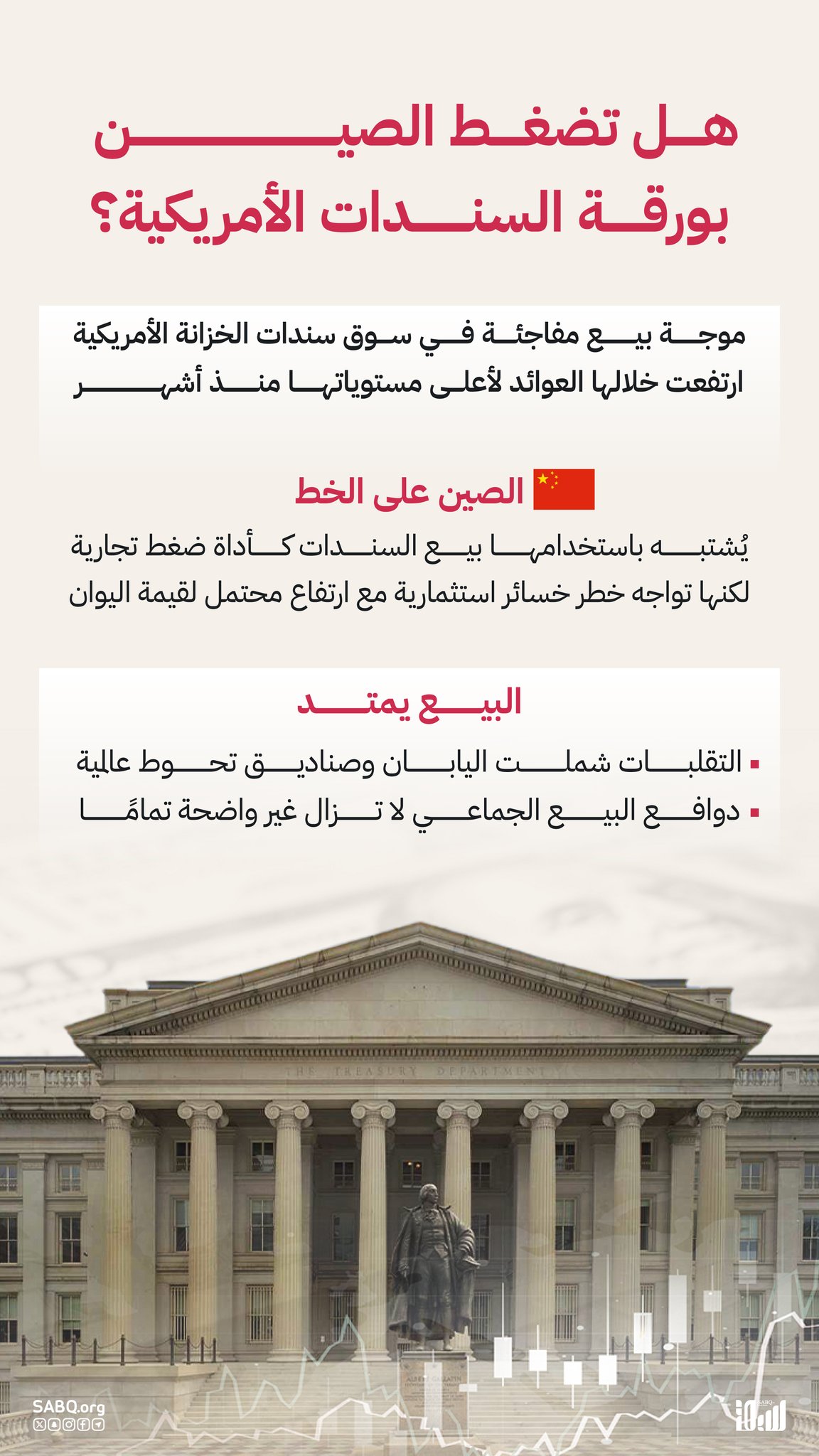 ويُعتقد أن الصين، ثاني أكبر دائن للولايات المتحدة، استخدمت بيع السندات كأداة ضغط في مواجهة الرسوم التجارية الأمريكية.