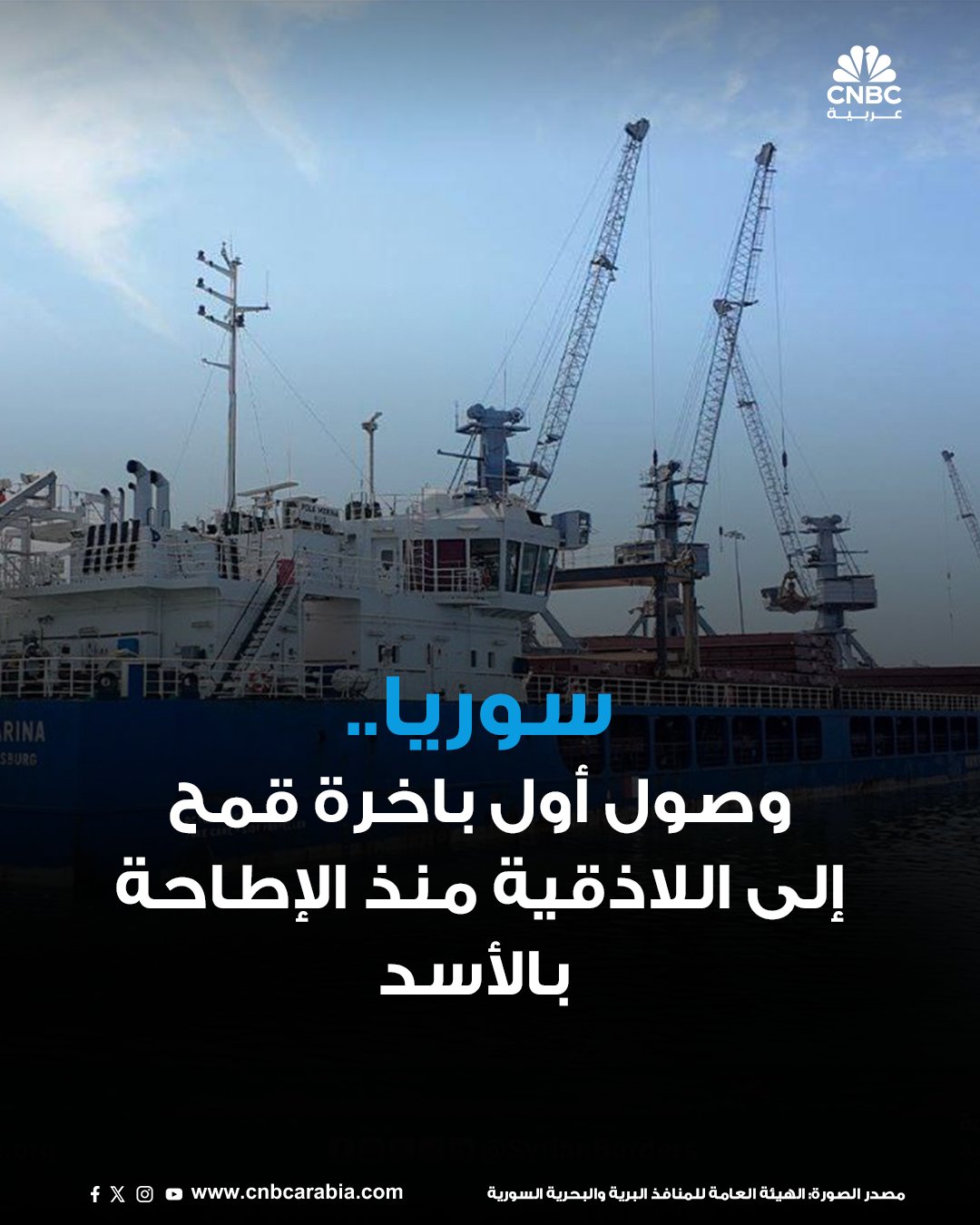 أول باخرة محملة بالقمح تصل إلى ميناء اللاذقية منذ الإطاحة بالرئيس السوري السابق بشار الأسد في ديسمبر كانون الأول