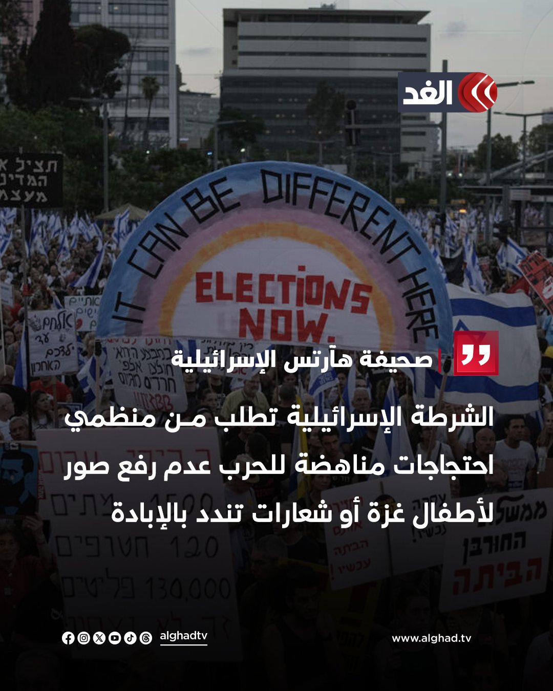 هآرتس: الشرطة الإسرائيلية تطلب من منظمي احتجاجات مناهضة للحرب عدم رفع صور لأطفال غزة أو شعارات تندد بالإبادة