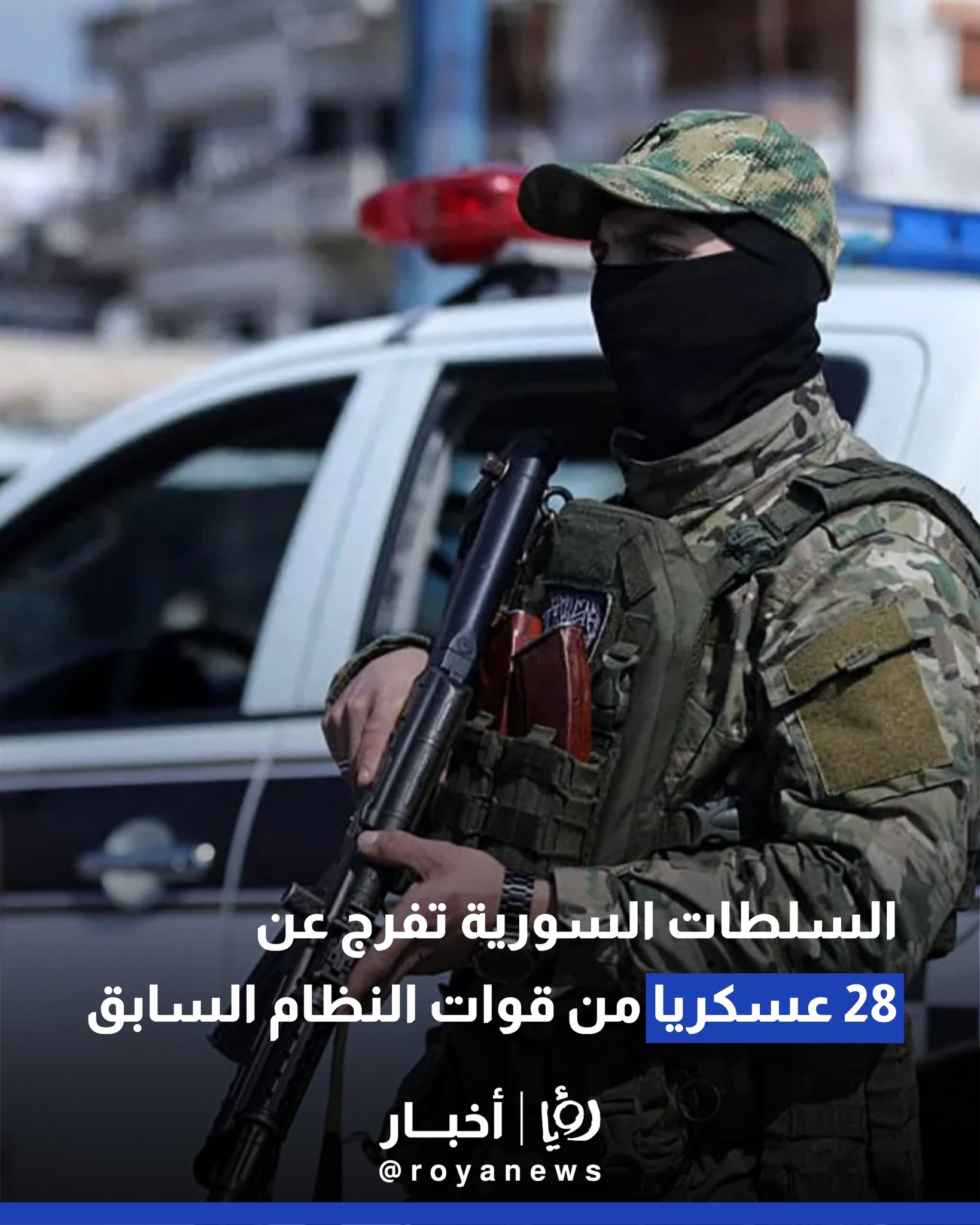 أفرجت السلطات السورية عن 28 عسكريًا من قوات النظام السابق، بينهم ضباط برتب مختلفة، وذلك في ثاني دفعة من نوعها منذ أحداث التمرد التي شهدها سجن عدرا بريف دمشق، بحسب ما أفاد به المرصد السوري لحقوق الإنسان، الأحد.